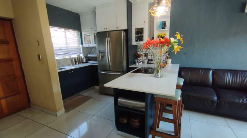 This beautifully upgraded 2-bedroom, 1.5-bathroom duplex in the heart of Dorandia offers 79 sqm of comfortable living space – perfect for first-time buyers, small families, or investors. Upstairs, you'll find two well-sized bedrooms, including a spacious main bedroom with elegant wooden floors and a built-in airconditioner for year-round comfort. The bathroom is modern and functional, with separate toilet and in shower bath. The open-plan lounge flows seamlessly into a renovated kitchen boasting stylish Caesar stone countertops, an electric touch hob, breakfast counter, and modern finishes throughout – ideal for everyday living and entertaining. Enjoy your morning coffee or unwind in the evenings on the cozy private patio. The property also features double garages for secure parking and extra storage space. Situated in a quiet, sought-after area close to schools, shops, and transport routes – this move-in-ready unit is a must-see. Don’t miss out – contact us today to arrange your private viewing!