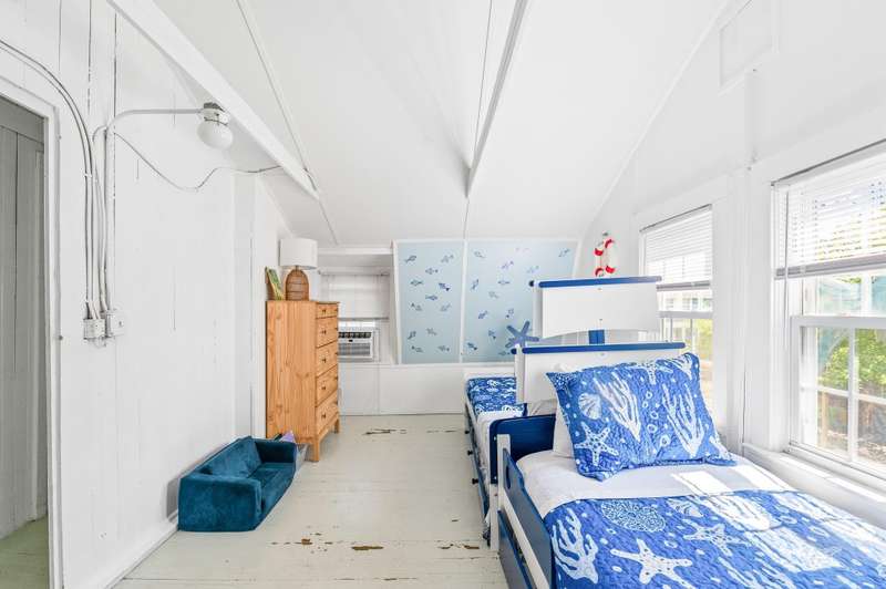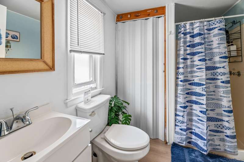 Welcome to The Big Fish, a classic Ocean Beach home. Fully renovated in 2024, this home features all-new appliances, updated electrical wiring, new subfloor and finish flooring throughout the main living areas, and a brand-new roof over the porch and rear extension. Structural upgrades include new posts and stringers, ensuring peace of mind for years to come. The bright, freshly painted interior is fully insulated on both floors for comfort. The main level offers a spacious screened-in porch with a sitting area, a cozy living room with an electric fireplace, a dining room, a renovated kitchen, a full bathroom, and a king-sized bedroom. Upstairs you'll find three additional bedrooms and a half bath. Centrally located in the heart of Ocean Beach, The Big Fish puts you just steps away from local dining, shops, and the beach. Whether you're looking for a peaceful retreat or a fun-filled summer home, this beautifully updated property is move-in ready and waiting to make your beachside memories unforgettable.