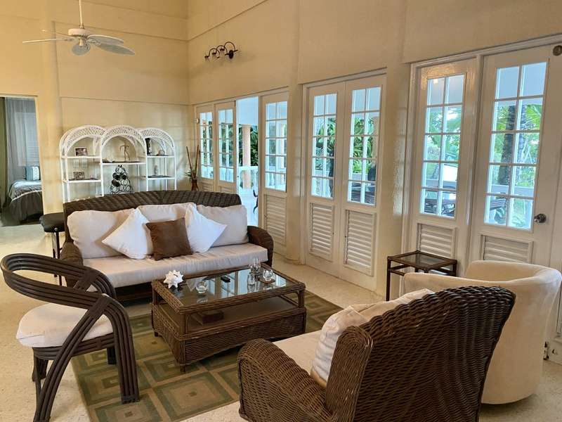 Its oversize lot, of 1,243 square meters, follow the natural, elevated contour of Encuentro, inspiring a classic West Indian ambiance of sight-filled, wrap-around verandas. Fully accessed by its fluid layout of bright, indoor space, and bonus area, with 2 bedrooms and a second kitchen.
