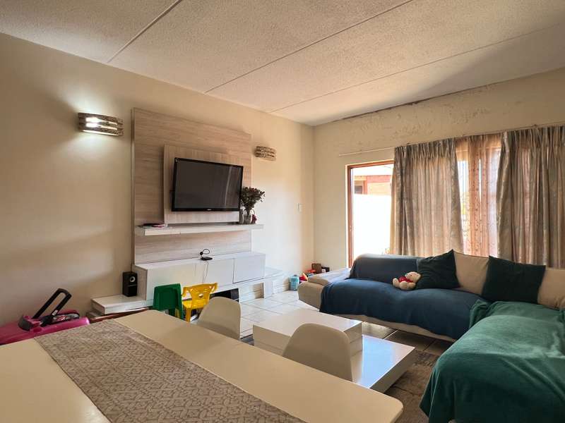 OFFERS WELCOME! What a lovely two bedroom apartment in Blue Stream Estate in Pretoria East! The apartment feels open and airy. The main living area gives the impression of space! The yard also offers more than enough space for kids or a pet or two! The estate also has a lot to offer! A beautiful clubhouse with swimming pool, jungle gym section for smaller kids, a soccer field as well as a dam where one can just relax or do some fishing. The unit has two dedicated carports. Another ingenious design idea was to incorporate a special little room just outside the unit especially for your washing machine - all to make the inside of the unit more spacious! Feel free to make contact with us today to arrange a viewing appointment!
