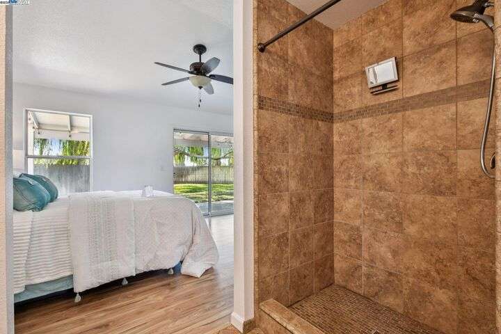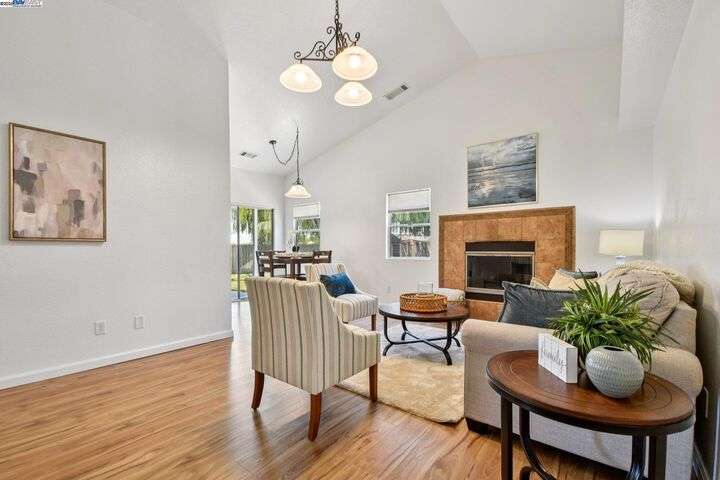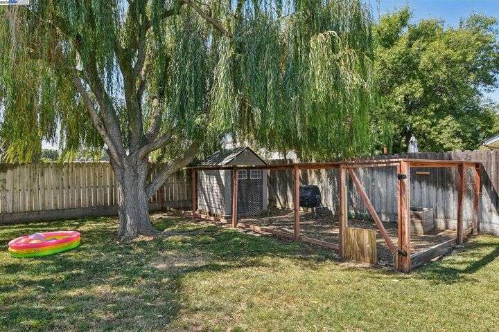 Fantastic opportunity! Cute 3 bedroom, 2 bath, (Possible fourth bedroom/office) single story home, approximately, 1,326 Sqft on an approximate 10,053 sqft lot! Eat-in in kitchen with stainless steel appliances, tile flooring and built in cabinetry with ample storage space, spacious living room with fireplace and vaulted ceilings, primary bedroom with vaulted ceiling, sliding glass door to backyard, primary bath with granite counter top, dual vanity sinks, stall shower and large walk-in closet, updated hall bath with granite counter top and tile flooring, situated on a pie shape lot, the backyard features a covered patio, sprawling lawn area with two large Willow trees, a Tiger fig, peach and orange tree as well, storage sheds, fenced dog run/pen, side access, walking distance to cute downtown, shopping, restaurants, schools, parks, Delta water ways and easy Access to I-5!