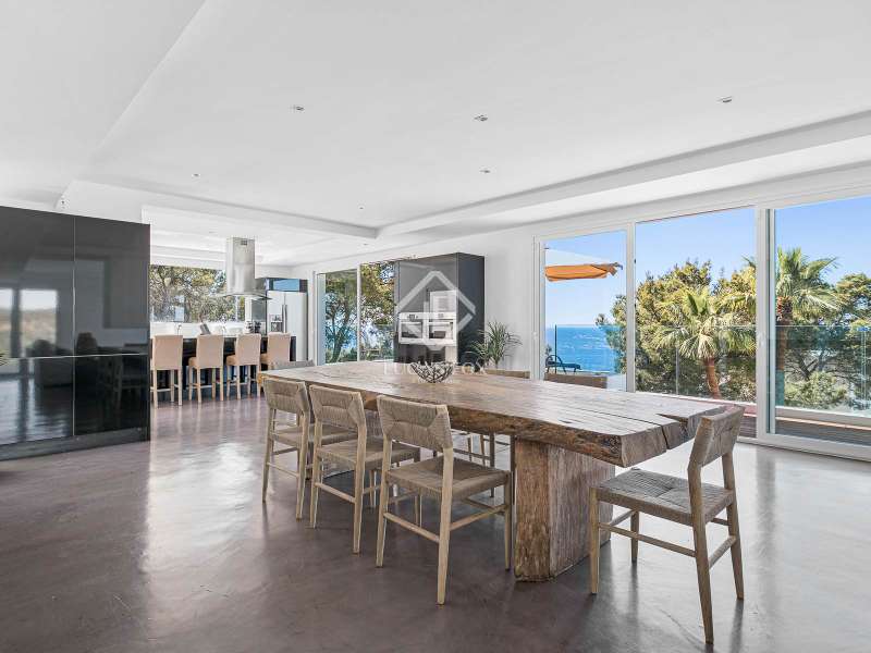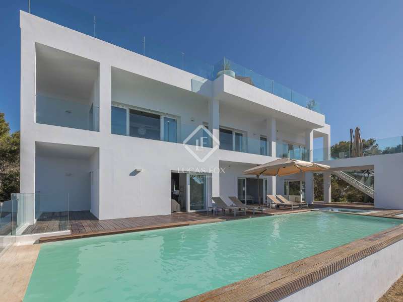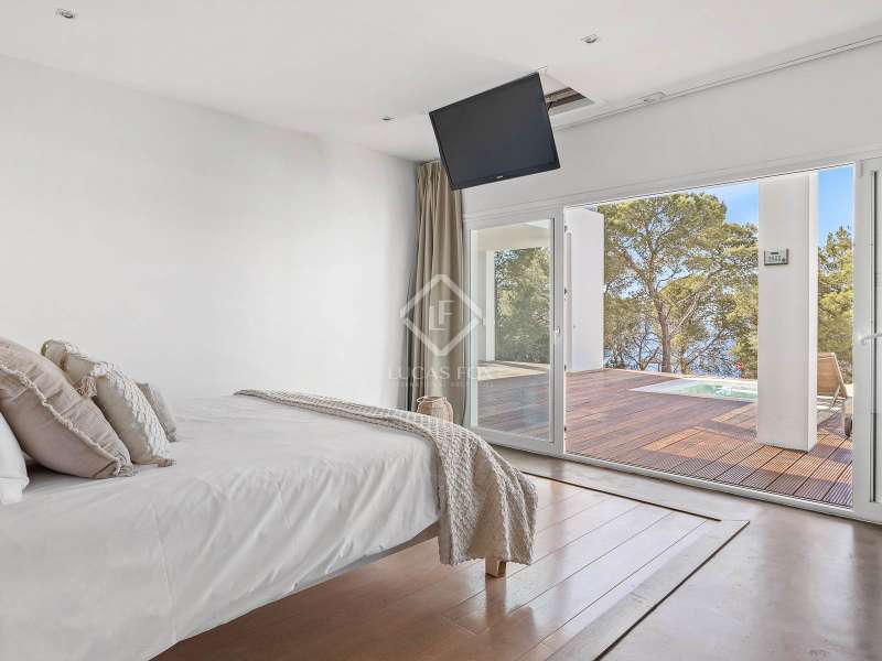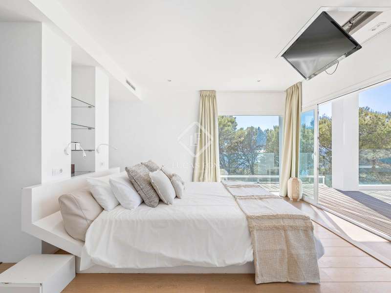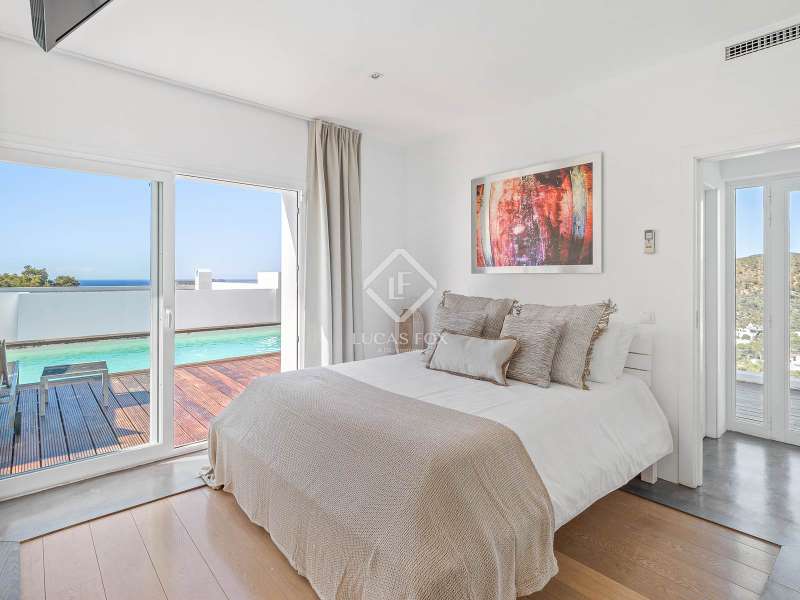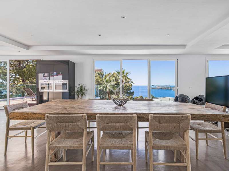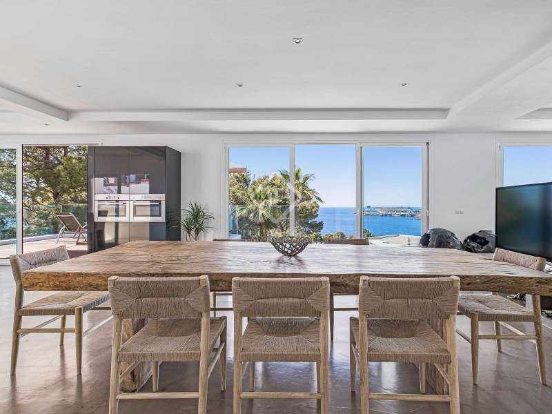 Experience breathtaking luxury at this stunning minimalist villa, perched on a hilltop with unparalleled views of the sea and mountains. Here, sophisticated elegance seamlessly blends with the natural beauty of the landscape, offering the perfect sanctuary. As you pass through the automatic gates, a shared entrance reveals sweeping panoramas as you journey up the winding drive. Designed to embody the Mediterranean lifestyle, these villas provide an ideal setting for savoring the charms of the White Isle. Villa B spans 450 m² of light and airy living space spread across two spacious floors, featuring four exceptional bedroom suites and beautifully-designed living areas. The cool, open ambiance is enhanced by floor-to-ceiling windows that frame captivating vistas, while integrated terraces effortlessly merge indoor and outdoor living. Expansive wooden decks and inviting pools set the stage for relaxation and entertainment, with a rooftop terrace offering a tranquil spot to enjoy sunset cocktails. Surrounded by lush gardens with vibrant flowers and graceful palm trees, these villas offer a serene escape. Modern amenities include a lift, air conditioning, Wi-Fi, an alarm system, video intercom and private parking. Indulge in the pinnacle of luxury living at this exquisite villa, where every detail has been thoughtfully crafted for an extraordinary experience. Contact us today for more information and to arrange a viewing of these exceptional properties.