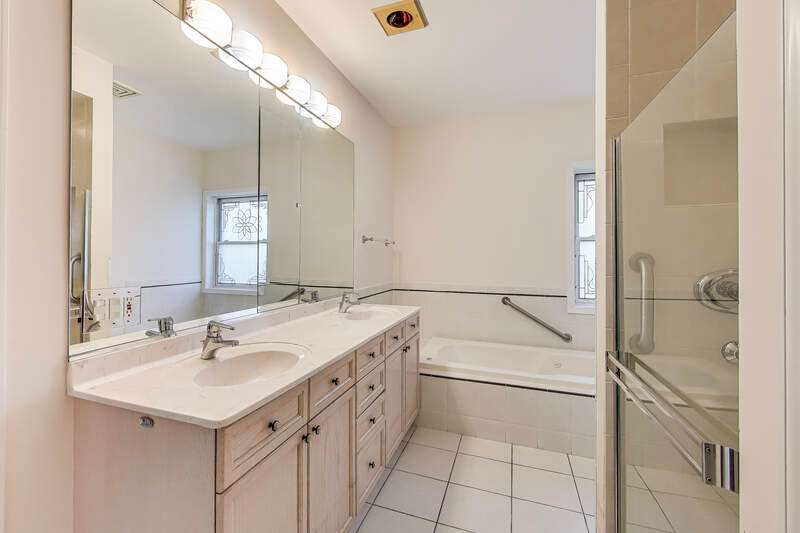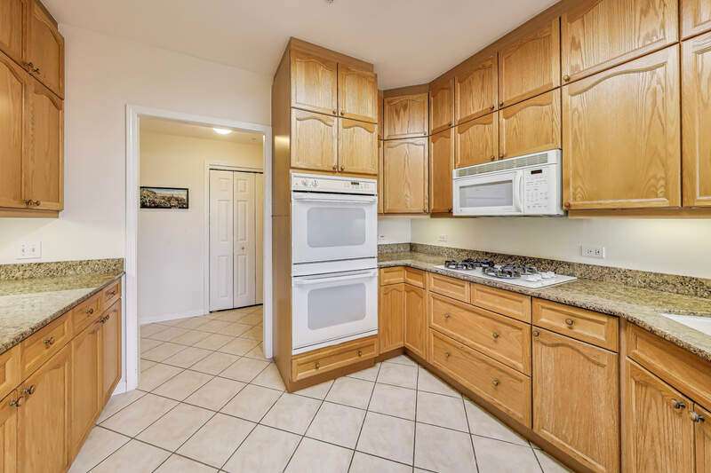 Spacious TOP FLOOR 3 Bedroom, 2 Bath Condo with nearly 2,000 sq. ft. of elegant living. This condo features 9-foot ceilings, hardwood floors throughout most of the unit, and abundant windows offering treetop views. The light-filled eat-in kitchen boasts granite countertops, light oak cabinetry, a gas cooktop, and double ovens. The expansive primary suite includes a luxurious bath with double vanities, whirlpool tub, separate shower, and an impressively large fully organized walk-in closet. Additional highlights include a separate laundry room, private balcony, storage locker, and two heated indoor parking spaces. Prime in-town location just steps from shops, restaurants, train, and the beach-an incredible opportunity not to be missed! This is an estate sale and is being sold 'As Is".