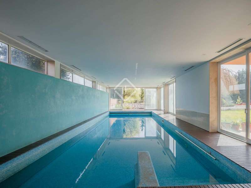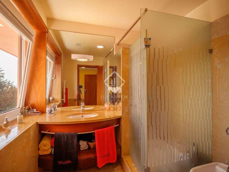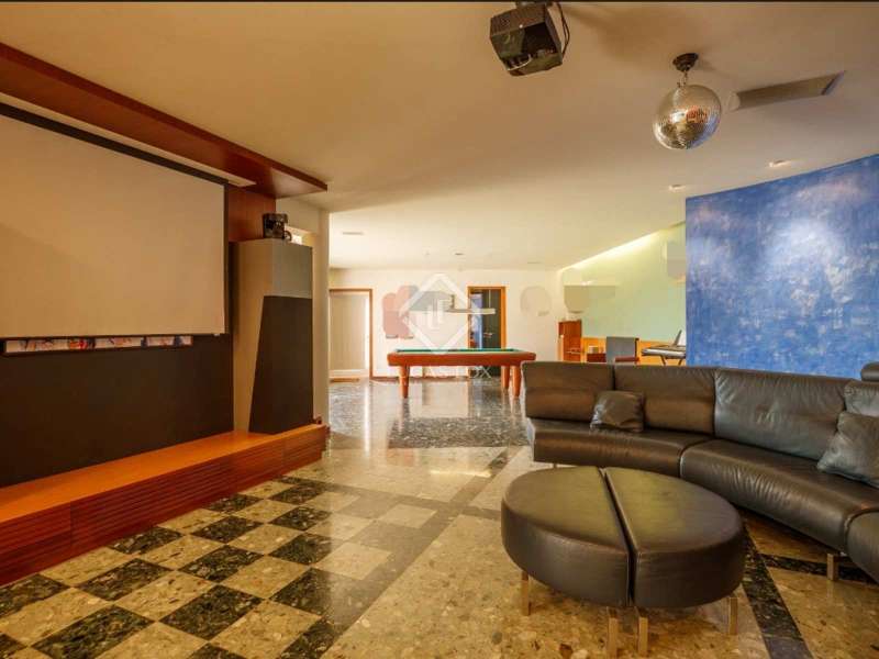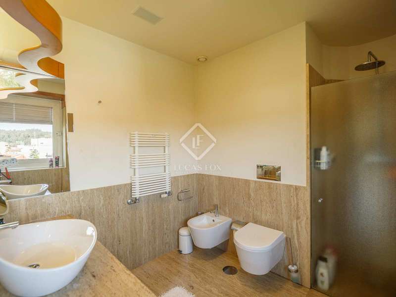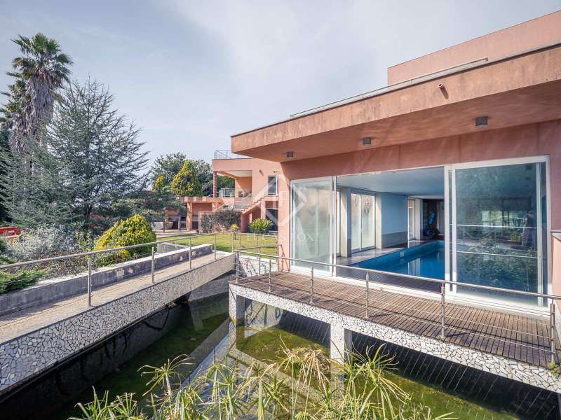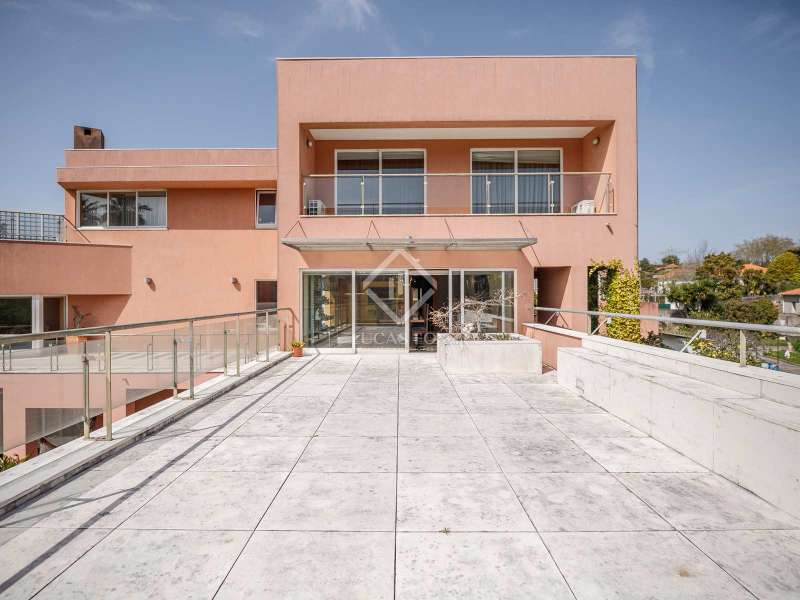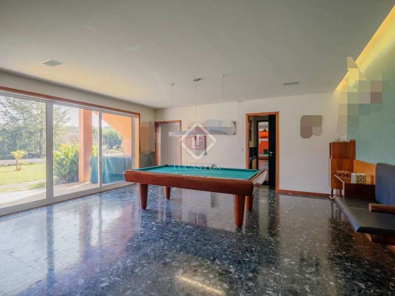 Modern and imposing villa, not only for its location but also for its strategic sun exposure. This T6 house, with 951 m2 of built area, is located on a plot of 2887 m2, and is divided into three floors: 1st floor, ground floor and floor -1. Floor -1 offers ample leisure space that communicates directly with the majestic garden, a lounge measuring 90 m2, bar, wine cellar, home cinema, 1 bathroom, indoor heated pool with jacuzzi, changing room and 2 bedrooms with direct light. On the ground floor are the service areas, with a spacious kitchen with a pantry of 40 m2, dining room, living room and a large terrace, all open space and communicating directly with the garden. This floor also comprises an office and a WC. The 1st floor offers four suites and two closets, one of which is in the master suite and another that supports the other suites, all of which have direct access to the balcony. The three floors are served by an interior elevator. All rooms in the house have air conditioning and a centralized surround sound system. The garden area surrounding the villa has a barbecue area with a kitchen, a tennis court, an orchard, a changing room and a parking lot for seven vehicles.