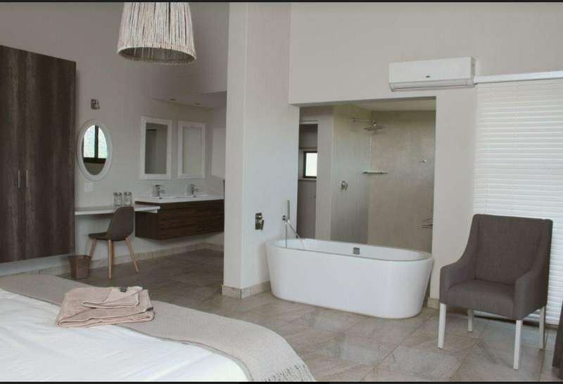 5 x weeks per annum shareholding in this luxurious lodge in Kamonande Nature Reserve. The Lodge comes fully furnished with a game viewer vehicle. It boasts 6 en-suite bedrooms, a large living area, huge social kitchen and a built-in braai. The swimming pool is located on the wrap around deck area close to the boma, braai area and covered outside dining area with beautiful views from the balconies. Enjoy game drives, wine and dine to your pleasure, pure relaxation or be as active as you choose. The lodge is centrally located on a mountain ridge on the Kamonande Nature Reserve with a 2-way approach on a maintained dirt road winding uphill and an opportunity not to be missed. Levies are +_ R4,685.00 per month. It covers housekeeping, laundry, cleaning material and fuel for the game vehicle and the Nature Reserve Development- roads, game fencing, infrastructure maintenance and common property etc.