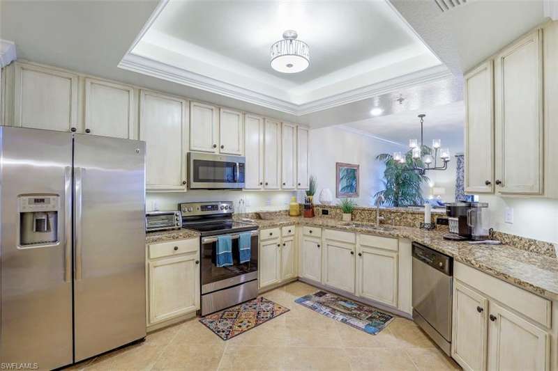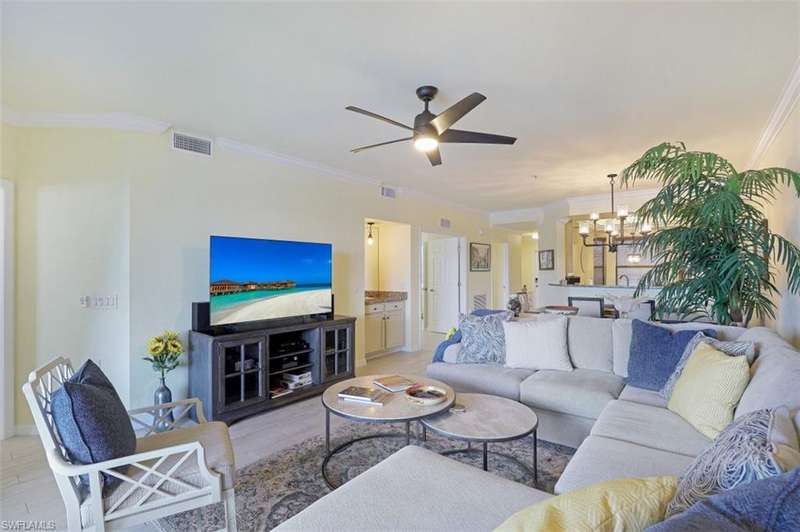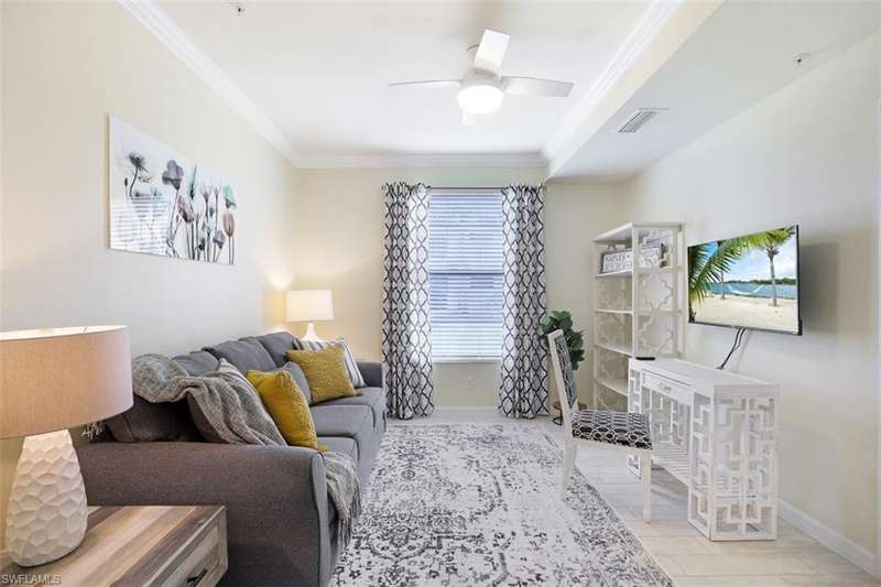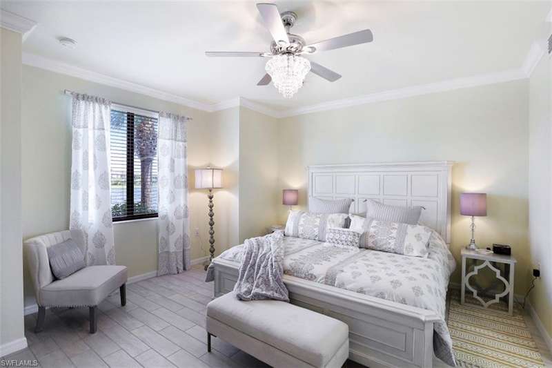 Enjoy plenty of natural light in this two bed+den/office, two bath END UNIT in Avellino at Treviso Bay. A panoramic lake view puts you in a Florida state of mind while you relax on your pavered screened lanai. Meticulous care and pride in this home is evident from the plank tile flooring to the custom lighting and window treatments. A one car garage offers convenience and protection from the sun for your vehicle. Visit the La Piscina restaurant and bar after a beautiful day at either the neighborhood pool or the Resort pool. The amenity rich clubhouse features tennis, pickle-ball, and a professionally staffed fitness center. Treviso Bay is located within 5 miles of Naples' Fifth Avenue and just a short drive to Marco Island.