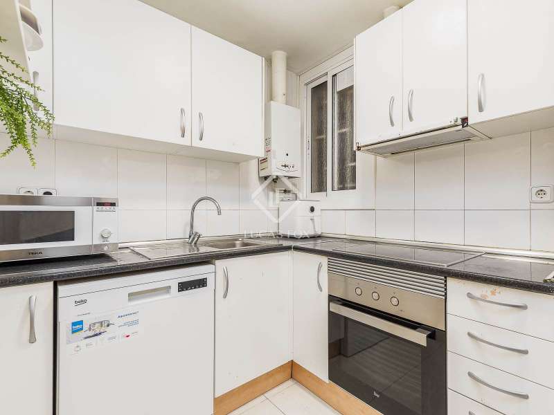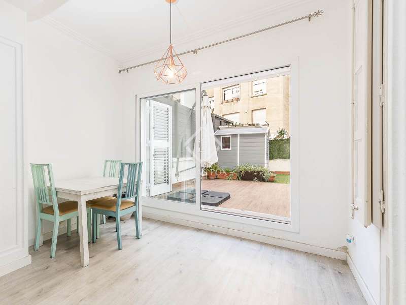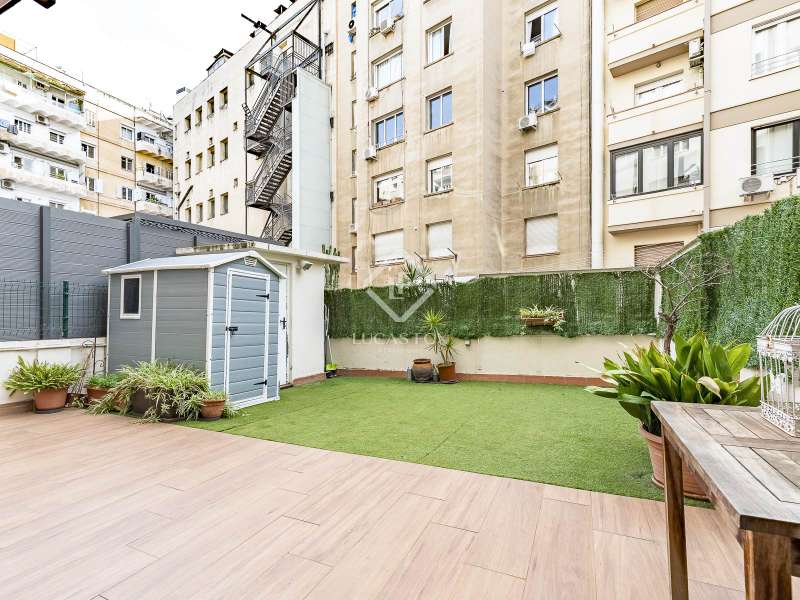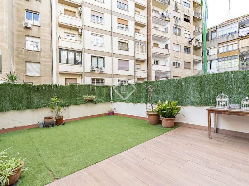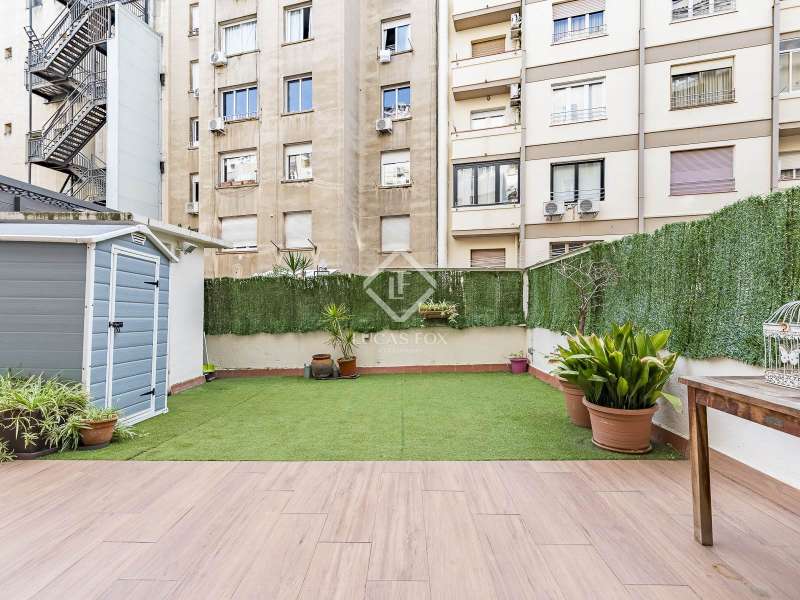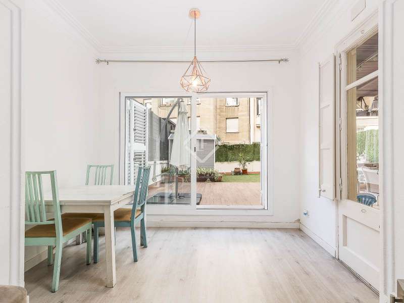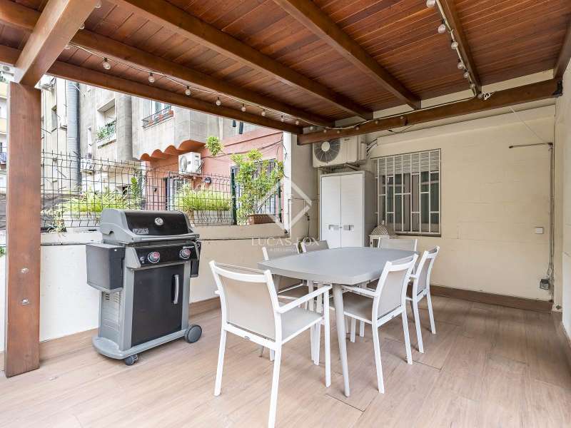 This property is located on the main floor of a classic building in the Eixample Left district. The day area comprises a dining room living room with direct access to a private 60 m² terrace. The terrace features a pergola with a dining area and barbecue. Also located in this exterior space is a separate utility area room. The separate, fully equipped kitchen is situated at the entrance of the property. The night area includes two double bedrooms, one overlooking the terrace and the other with access to an courtyard, as well as a single bedroom currently used as an study. This area is completed by a full bathroom , renovated a few years ago. The property has split-system air conditioning and heating. La Finca has an elevator.
