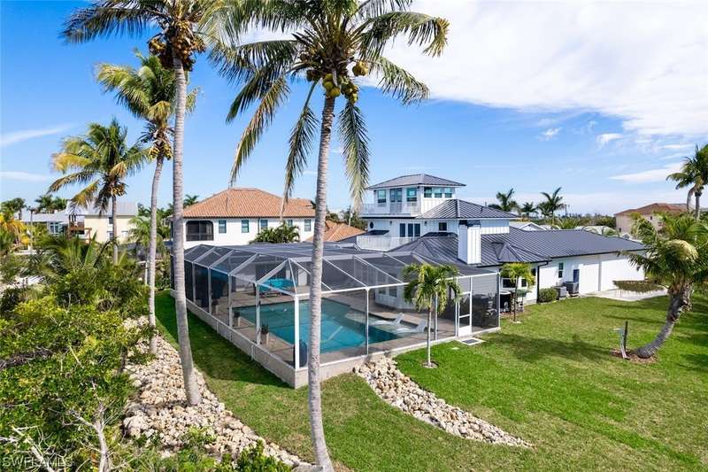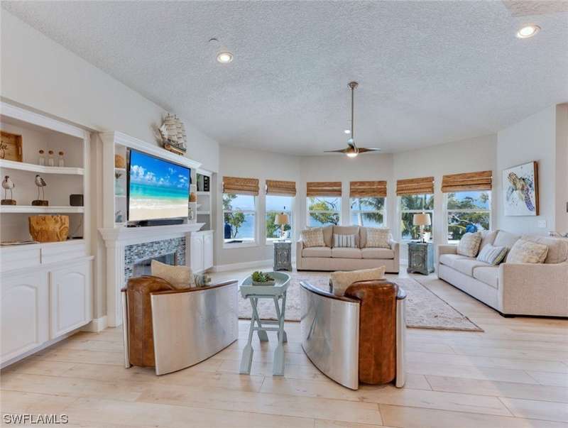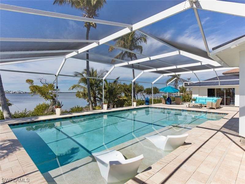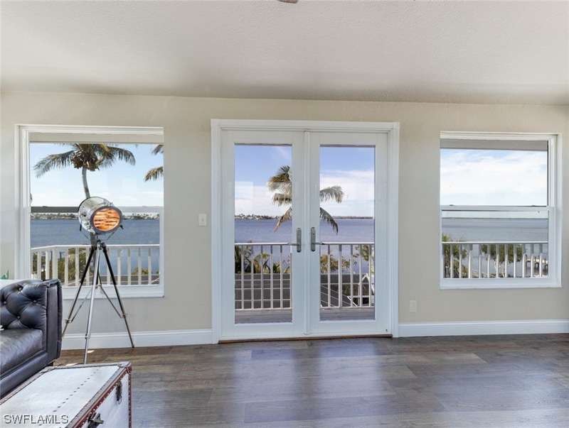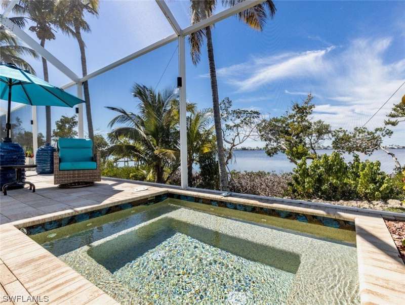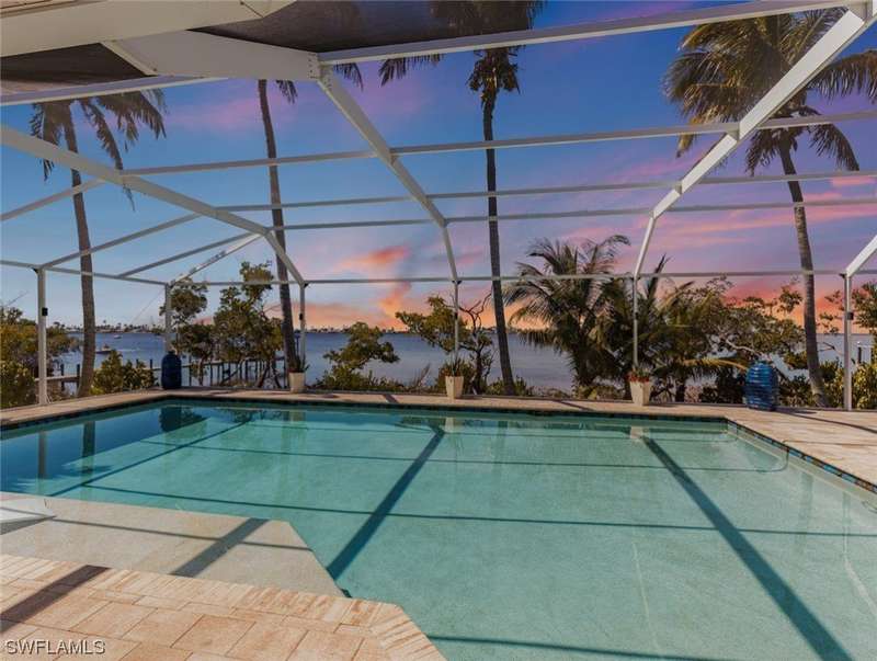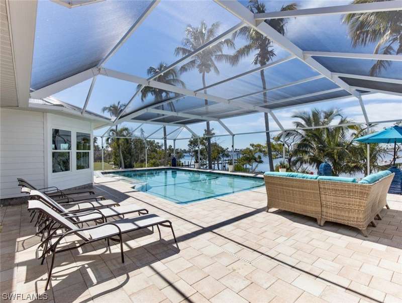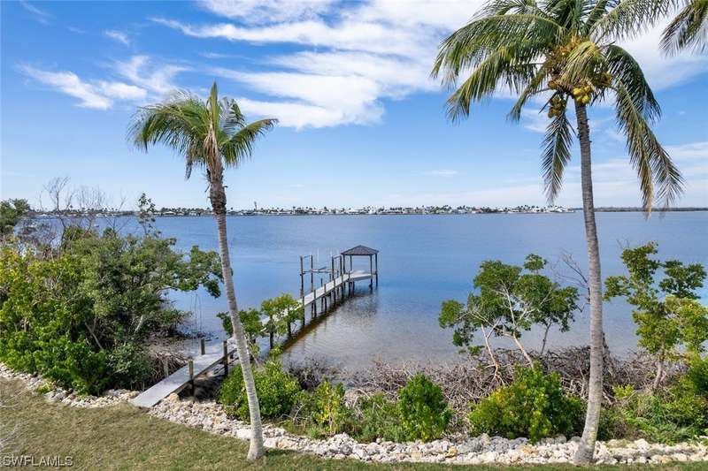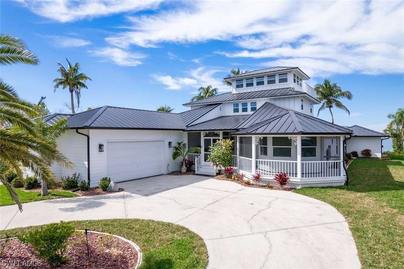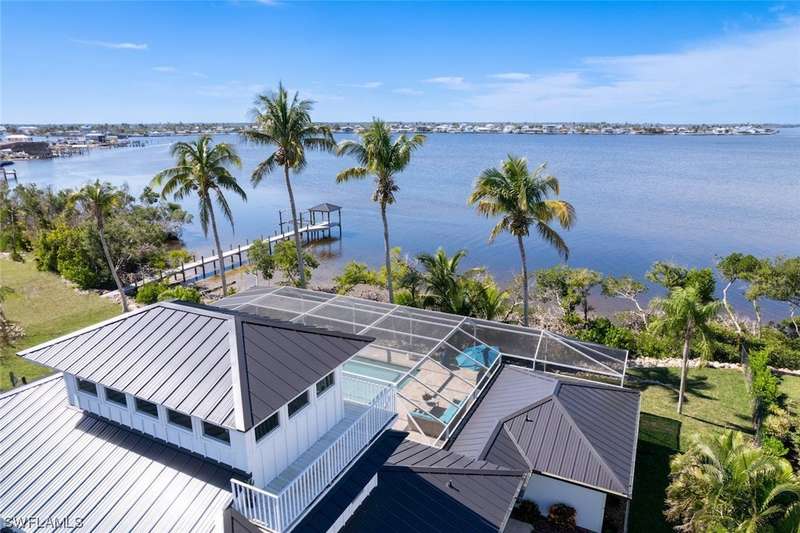 This property sits high and never had any flood water damage from past 3 hurricanes so its well tested. Discover an unparalleled fully furnished waterfront residence situated in the heart of the picturesque Matlacha, offering a mesmerizing 360-degree view of the water and quick unrestricted boating access. A true boaters dream with amazing water access to fishing, and a relaxing day on water around Pine Island, Cayo Costa, and Saint James City. Nestled on 2.24 acres with a high elevation that kept it dry during Hurricane Ian flooding, this unique property boasts a covered boat dock with a new 10,000 lb. boat lift, and maintenance free decking leading to the dock. Exemplifying Key West style, this distinctive home features five spacious bedrooms, a den, a wood-burning fireplace, four full baths, and one-half bath. A 900 sq ft four-car attached garage with a new garage door and opener to be installed. The recently remodeled designer kitchen showcases wood cabinets, granite countertops, a backsplash, top-of-the-line stainless steel appliances and a an amazing view of the bay. The interior and exterior underwent a comprehensive update and professional furnishing recently. Exterior upgrades include new standing seam metal roof, new hardi board siding, new exterior impact doors, lanai lighting by lanai bright, new no seeum lanai screen, fresh paint, new covered metal roof at dock, new irrigation system, new patio furniture, new sod, new windows in 2023 were replaced with impact glass. The property is being sold turnkey, with all furniture included. Immerse yourself in authentic Florida living with the expansive caged pool, separate spa, and ample pool decking, all installed in 2015. Conveniently located, this grand residence is a short distance from local Matlacha restaurants and historic shops, and just a brief drive to some of the region's best beaches, fine dining establishments, shopping centers, airports, and cultural events. Experience the epitome of Florida luxury living in this extraordinary waterfront haven.