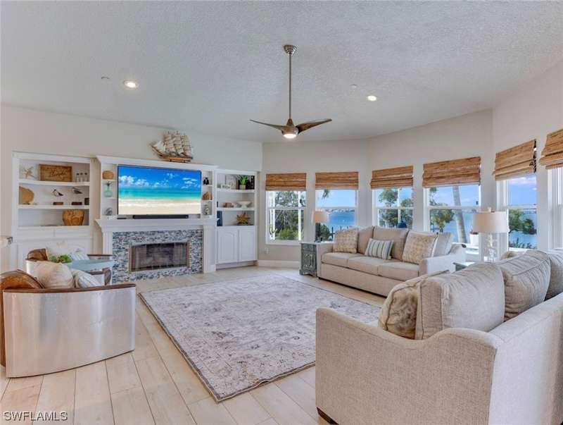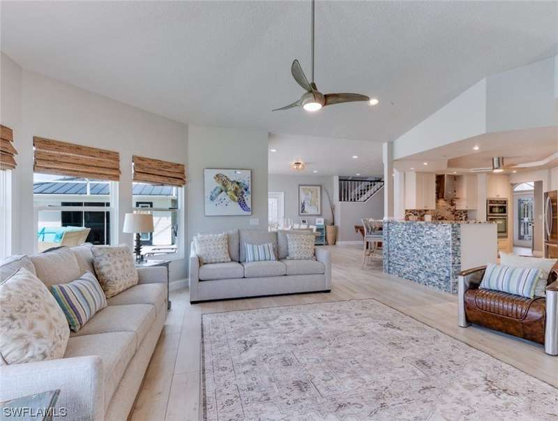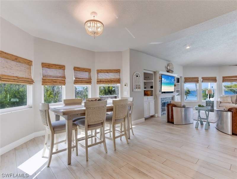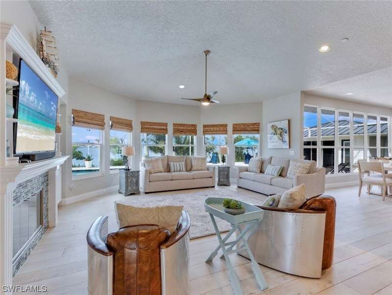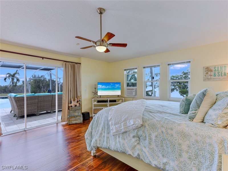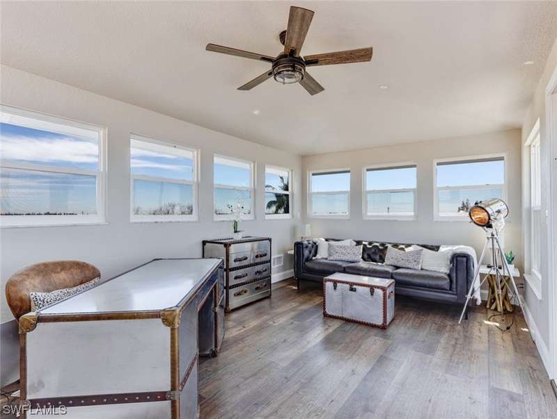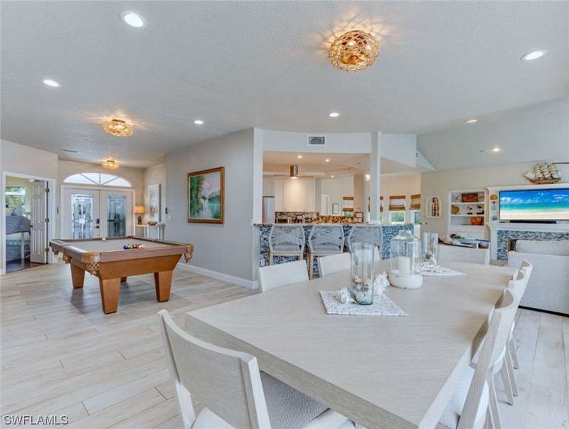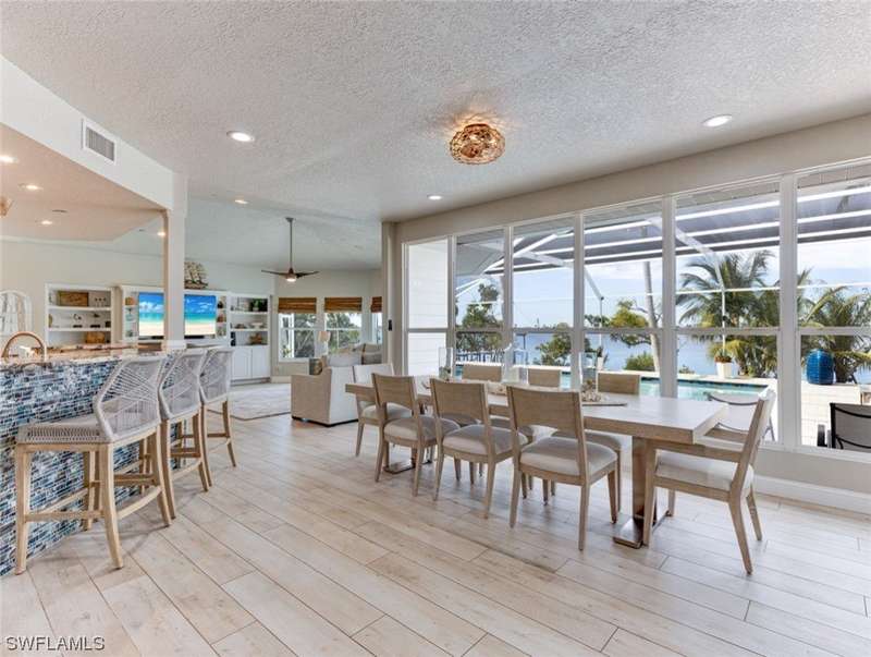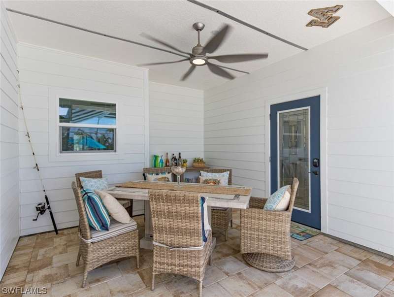 This property sits high and never had any flood water damage from past 3 hurricanes so its well tested. Discover an unparalleled fully furnished waterfront residence situated in the heart of the picturesque Matlacha, offering a mesmerizing 360-degree view of the water and quick unrestricted boating access. A true boaters dream with amazing water access to fishing, and a relaxing day on water around Pine Island, Cayo Costa, and Saint James City. Nestled on 2.24 acres with a high elevation that kept it dry during Hurricane Ian flooding, this unique property boasts a covered boat dock with a new 10,000 lb. boat lift, and maintenance free decking leading to the dock. Exemplifying Key West style, this distinctive home features five spacious bedrooms, a den, a wood-burning fireplace, four full baths, and one-half bath. A 900 sq ft four-car attached garage with a new garage door and opener to be installed. The recently remodeled designer kitchen showcases wood cabinets, granite countertops, a backsplash, top-of-the-line stainless steel appliances and a an amazing view of the bay. The interior and exterior underwent a comprehensive update and professional furnishing recently. Exterior upgrades include new standing seam metal roof, new hardi board siding, new exterior impact doors, lanai lighting by lanai bright, new no seeum lanai screen, fresh paint, new covered metal roof at dock, new irrigation system, new patio furniture, new sod, new windows in 2023 were replaced with impact glass. The property is being sold turnkey, with all furniture included. Immerse yourself in authentic Florida living with the expansive caged pool, separate spa, and ample pool decking, all installed in 2015. Conveniently located, this grand residence is a short distance from local Matlacha restaurants and historic shops, and just a brief drive to some of the region's best beaches, fine dining establishments, shopping centers, airports, and cultural events. Experience the epitome of Florida luxury living in this extraordinary waterfront haven.
