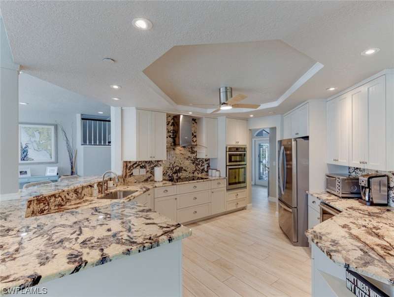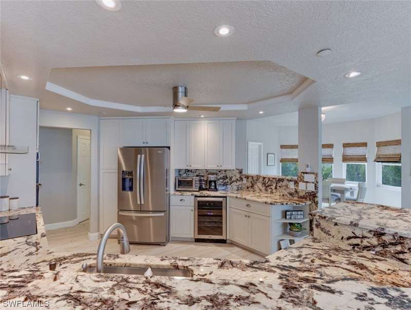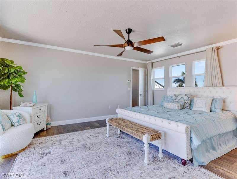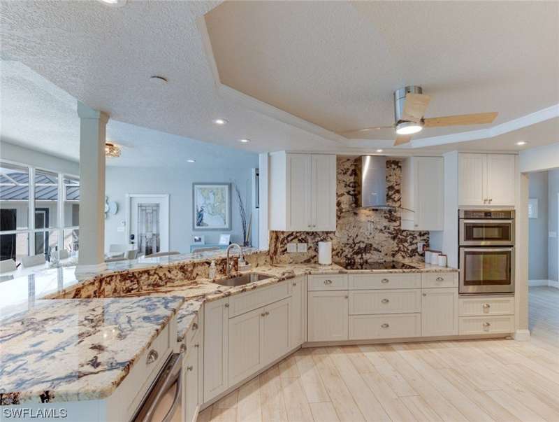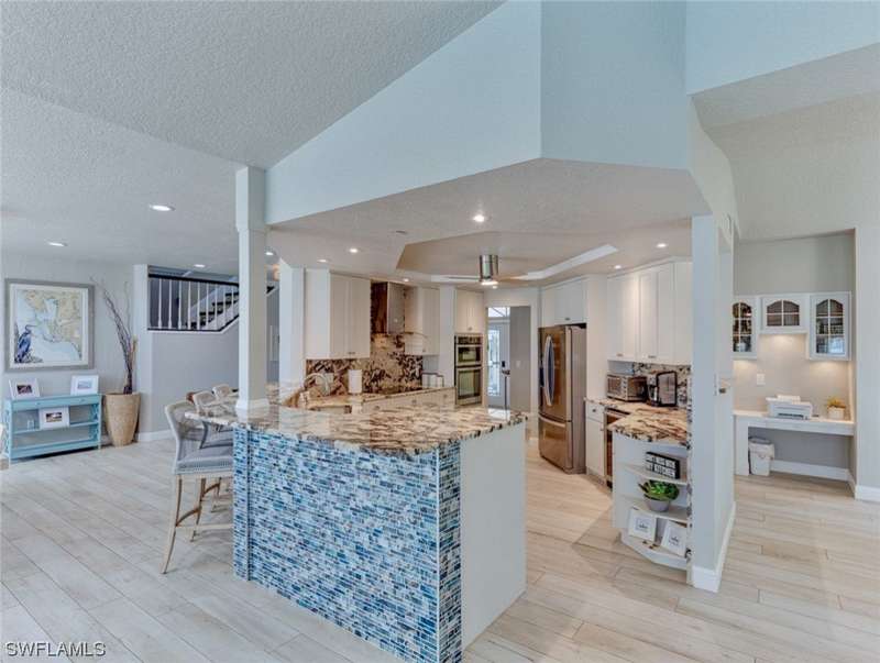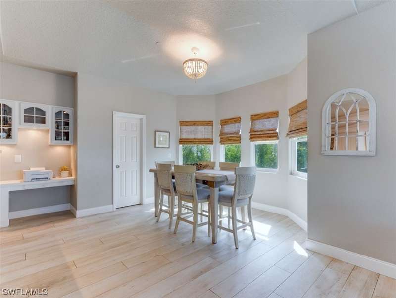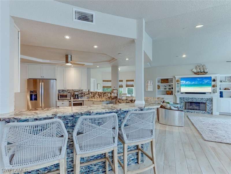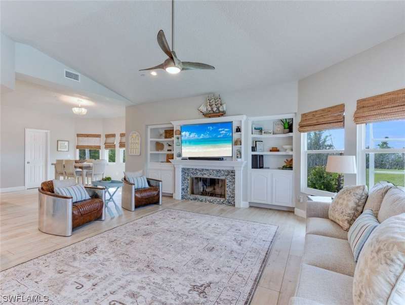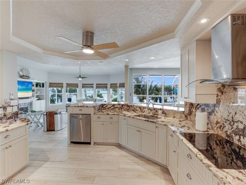 This property sits high and never had any flood water damage from past 3 hurricanes so its well tested. Discover an unparalleled fully furnished waterfront residence situated in the heart of the picturesque Matlacha, offering a mesmerizing 360-degree view of the water and quick unrestricted boating access. A true boaters dream with amazing water access to fishing, and a relaxing day on water around Pine Island, Cayo Costa, and Saint James City. Nestled on 2.24 acres with a high elevation that kept it dry during Hurricane Ian flooding, this unique property boasts a covered boat dock with a new 10,000 lb. boat lift, and maintenance free decking leading to the dock. Exemplifying Key West style, this distinctive home features five spacious bedrooms, a den, a wood-burning fireplace, four full baths, and one-half bath. A 900 sq ft four-car attached garage with a new garage door and opener to be installed. The recently remodeled designer kitchen showcases wood cabinets, granite countertops, a backsplash, top-of-the-line stainless steel appliances and a an amazing view of the bay. The interior and exterior underwent a comprehensive update and professional furnishing recently. Exterior upgrades include new standing seam metal roof, new hardi board siding, new exterior impact doors, lanai lighting by lanai bright, new no seeum lanai screen, fresh paint, new covered metal roof at dock, new irrigation system, new patio furniture, new sod, new windows in 2023 were replaced with impact glass. The property is being sold turnkey, with all furniture included. Immerse yourself in authentic Florida living with the expansive caged pool, separate spa, and ample pool decking, all installed in 2015. Conveniently located, this grand residence is a short distance from local Matlacha restaurants and historic shops, and just a brief drive to some of the region's best beaches, fine dining establishments, shopping centers, airports, and cultural events. Experience the epitome of Florida luxury living in this extraordinary waterfront haven.