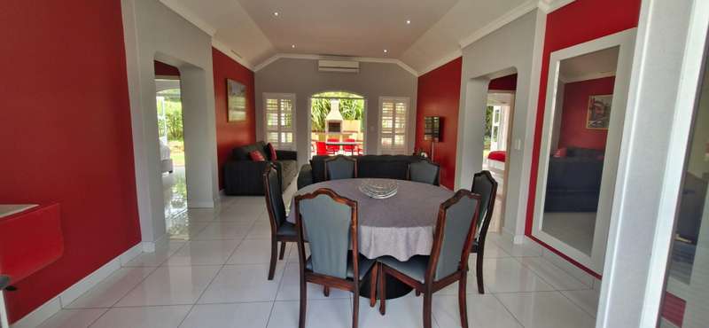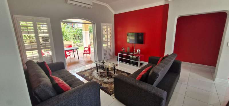 Fully Furnished. This is an exceptional opportunity for the discerning buyer who appreciates convenience and demands the very best! This beautiful home offers space and privacy with three bedrooms and three bathrooms, all en-suite. The spacious open plan living area leads onto an outside patio and braai area overlooking the tree-filled gardens. Separate guest toilet. Other Features: Double Lock-up Garage. Back-up Water Tank connected to the main dwelling. Ceiling Fans throughout. Air conditioners in all three bedrooms. The Estate offers a well-managed rental pool with excellent return on your money! Caribbean Estates is serviced by two strong boreholes. The Estate has lush tropical gardens, small canals, a swimming pool, tennis courts, launching jetty for boats and much more! A huge variety of bird life and small buck species can be observed as you make your way towards the warm Indian Ocean to un-spoilt beaches. Across from the river, which borders on the Estate, is the Wild Coastal Hotel, which offers a large variety of entertainment as well as water sports, horse riding and a magnificent Golf Course. A true Gem! Call for an appointment to view