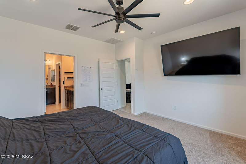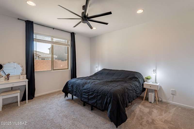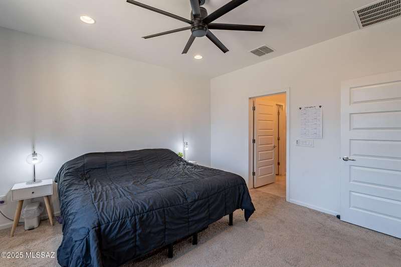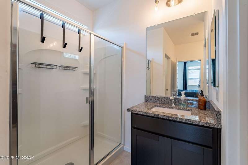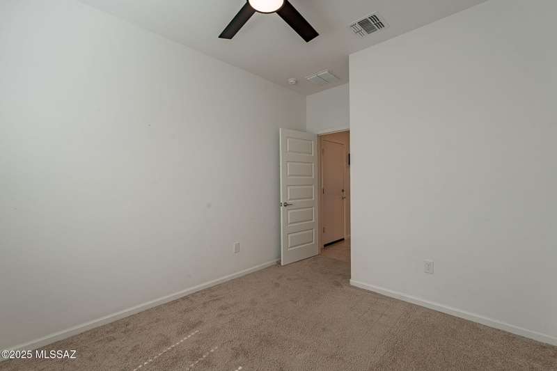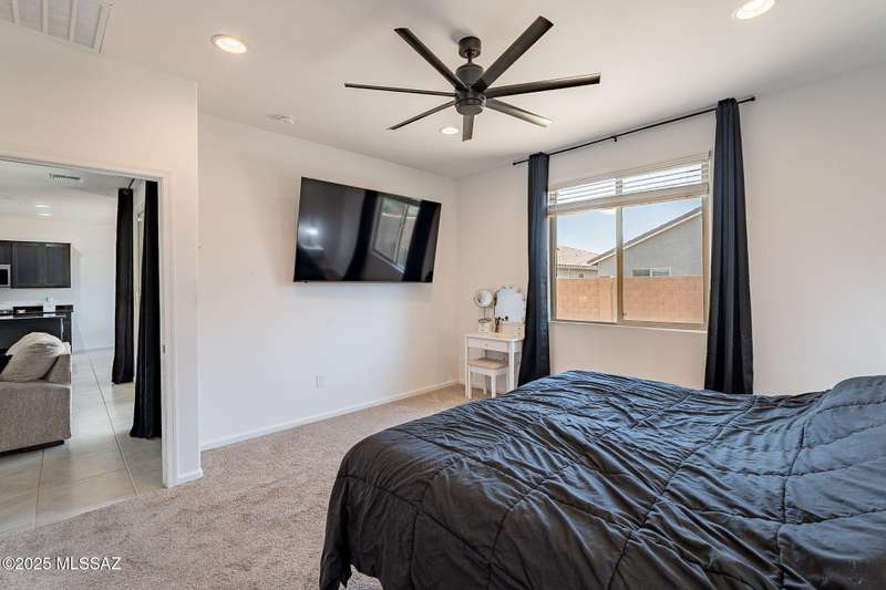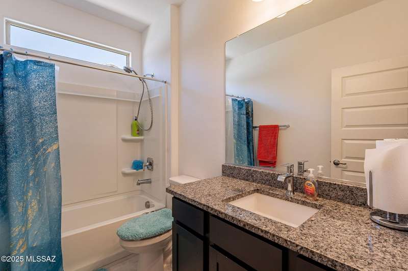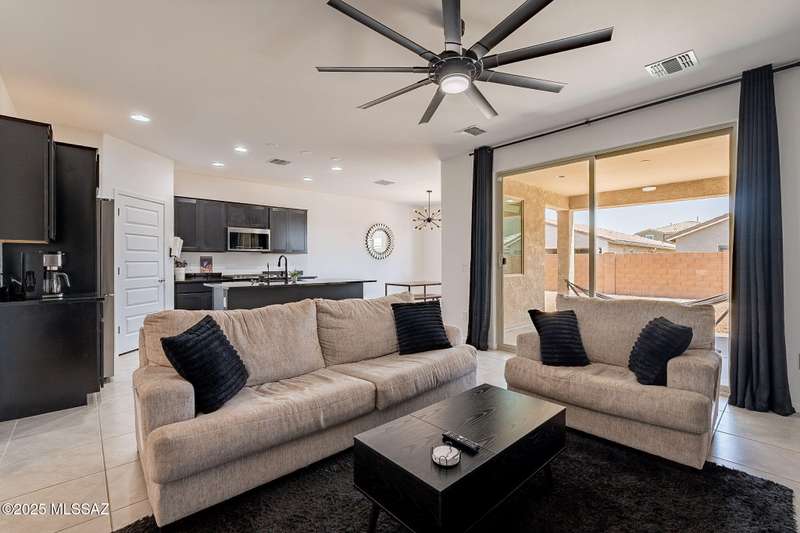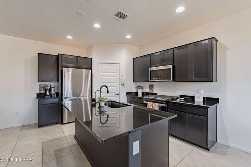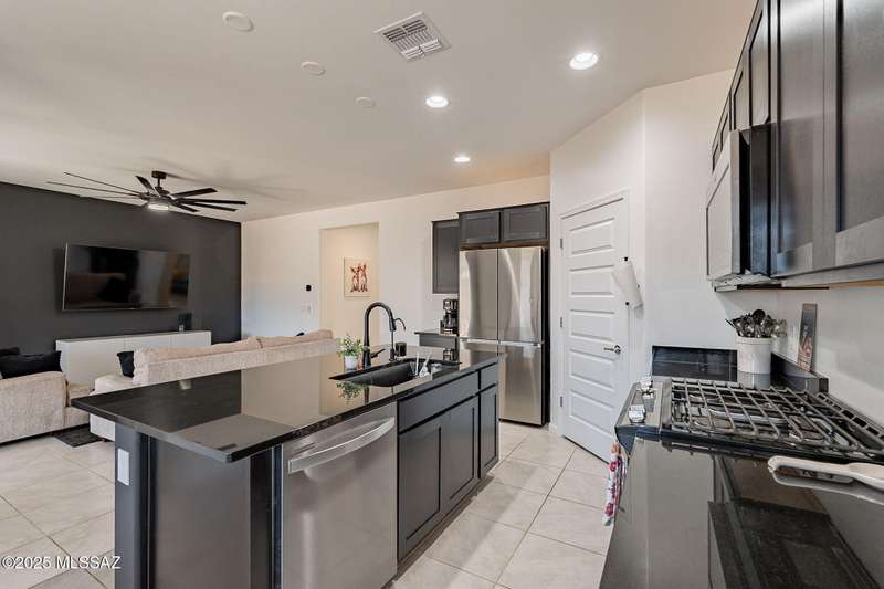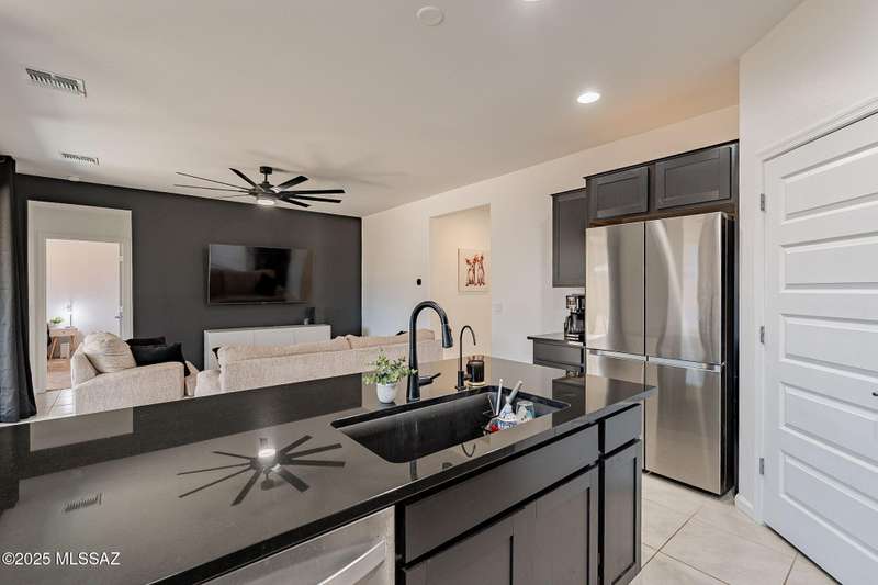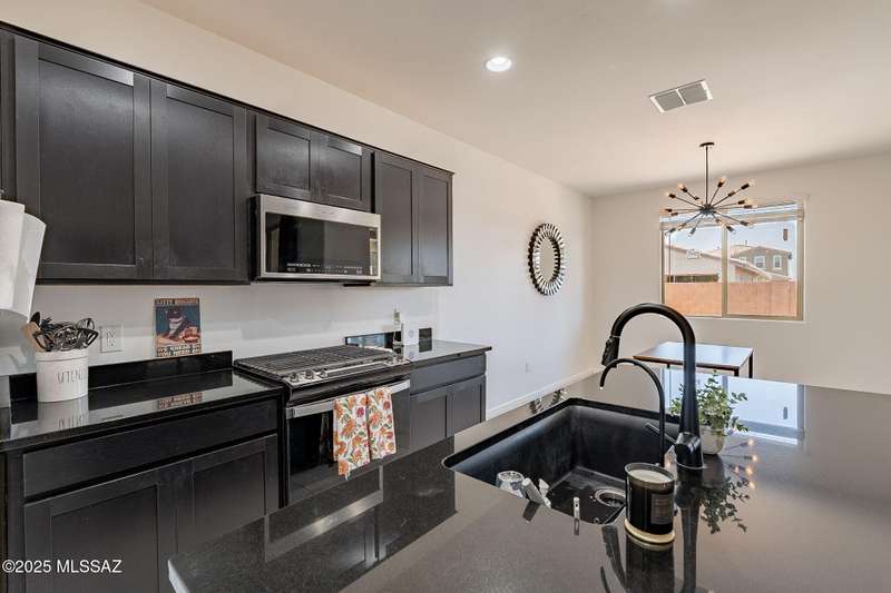 Built in 2022 by Mattamy Homes, this Acacia plan in Saguaro Trails blends modern design with easy desert living. The 1,653 sq ft single-story layout includes 2 bedrooms, 2 baths, a private den, and a flex room ideal for an office or gym. The open kitchen features black granite countertops, stainless steel appliances, and a large island with seating. Refrigerator, washer, and dryer convey. Energy-efficient construction and a smart thermostat enhance comfort year-round. Low-maintenance desert landscaping and access to community parks, pool, and walking paths within the Vail School District.