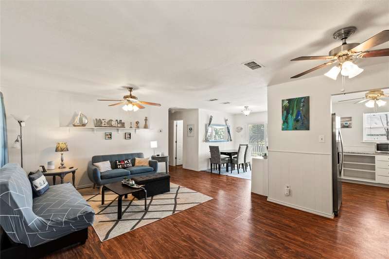 Charming lake house on wide open water at located just 45 minutes from Dallas! This updated 3-bedroom, 2-bath home sits on two waterfront lots and offers stunning open water views the moment you step inside. STR-friendly, it's perfect as a full-time residence, weekend getaway, or income-producing rental. The open-concept layout features a bright kitchen with dining area, spacious living room, and direct patio access for seamless indoor-outdoor entertaining. The newly built primary suite includes a private ensuite and lake views, while the two additional bedroomscurrently set up as bunk roomsare great for guests or kids. Outside, enjoy a large yard with space to relax, play, or host gatherings by the water. Detached garage provides room for one car plus storage for lake gear and lawn equipment. Furnishings negotiablemove in and start making memories on the lake!
