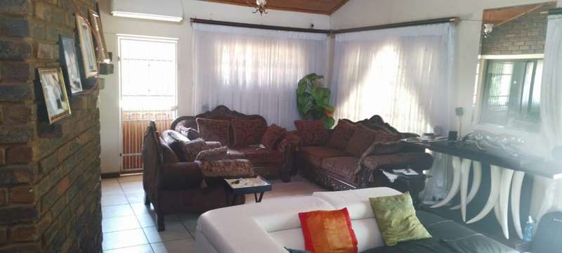 With a couple of Primary and Secondary schools to choose from this prime property is in the center of the economic hub of Brits. The paving that runs from the street right up to double garages is the first thing you notice. The high ceilings is admirable with a partly face brick wall inside highlighting the two open plan lounge settings where you can walk out onto an open patio Sliding doors connects the dining room with the lounge where space meets the high quality pressed ceilings and well designed kitchen . It offers you lots of counter and storage space with a center island accommodating a hob and an extractor fan. For the enthusiastic cook there is an extra large eye level oven. The main bedroom have a walk in closet and an en -suite consisting of a shower ,bath ,toilet and basin. All the other bedrooms have build in wardrobes and the study can also being used as a bedroom. The family bathroom have a bath ,shower ,toilet and a basin. The entertainment area have a sizable swimming pool and only minor detail is needed to finish the lapa. There is lots of space for the kids to enjoy themselves with a lovely lawn next to the house or at the swimming pool area. Make this your family home that you have always dreamt off. Call me today to arrange for a viewing