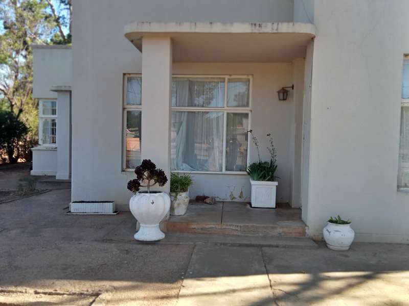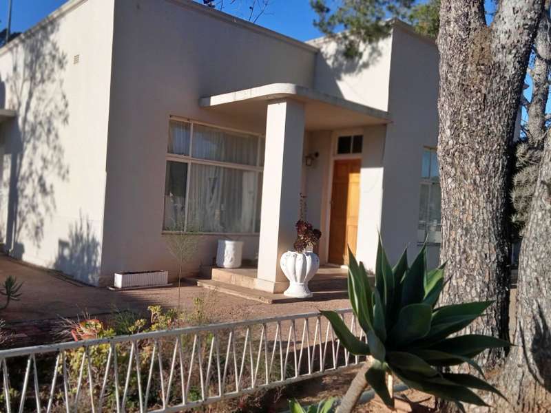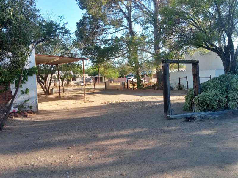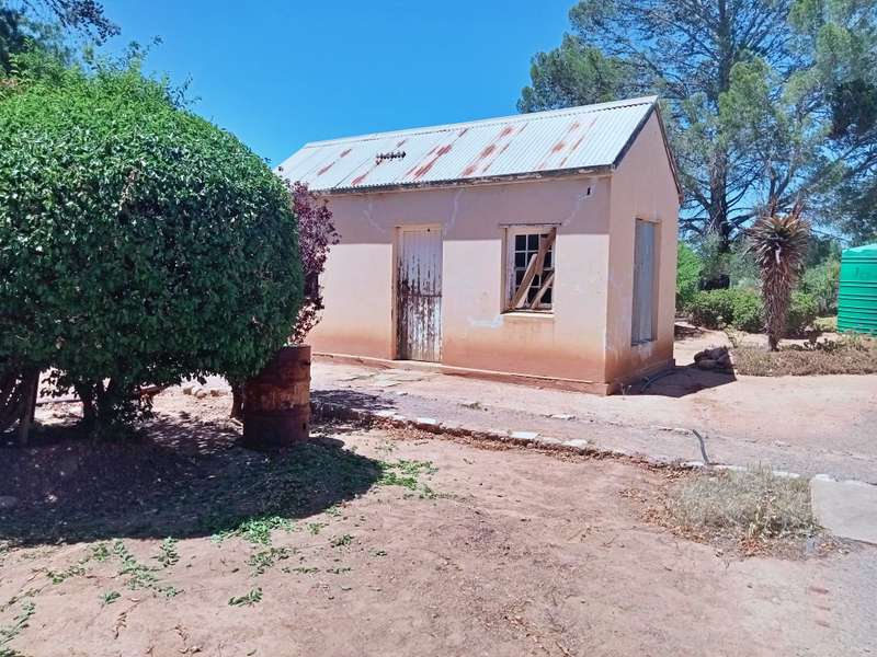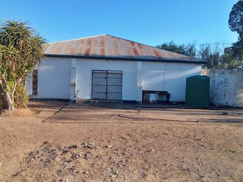Looking for the best of both situations? Would you like to work from home? Here’s a unique opportunity to acquire a large erf with business rights in the Main Road of Steytlerville and to relive the vibe of years gone by. This was the address of the first garage and the home of the original owner. Although it needs some TLC it has the aura of the seventies from an era of great nostalgia The 9915 m² erf has been consolidated but can be subdivided to accommodate interested buyers. The Homestead: The Art deco inspired homestead faces Northeast into Philpott Street, away from the main road, and has large windows and two portico entrances. The house has 4 large bedrooms, one with BIC. The main bedroom faces South and has a small en-suite bathroom with shower, basin and toilet A second guest bathroom includes a bath, basin and separate toilet. The kitchen opens onto an outdoor braai patio. The home is carpeted. There are burglar bars on most of the South facing windows. A lovely free-standing building could be converted into a garden flat . There are several Jo- Jo water tanks that store rainwater and an underground tank holds water for the garden The business end This property dates back several years and was the site of the first garage in Steytlerville. It has business and residential rights For this purpose, several outbuildings were erected to accommodate the needs of the business at the time. There is a huge double doored garage with basic fitments including a service or oil change dugout, reminiscent of the old days. Another building on the erf with a street façade was used as a showroom for the garage and has big windows facing the street front. This is a popular building with income generating potential. At present is serves as a storeroom for a local business. One erf could be used for a new business and could be subdivided to build a home as well. The property could also be subdivided to suit the purposes of the buyers or can be bought as a single unit. Negotiations would influence the exact price of the property according to subdivision, but the following are guidelines.