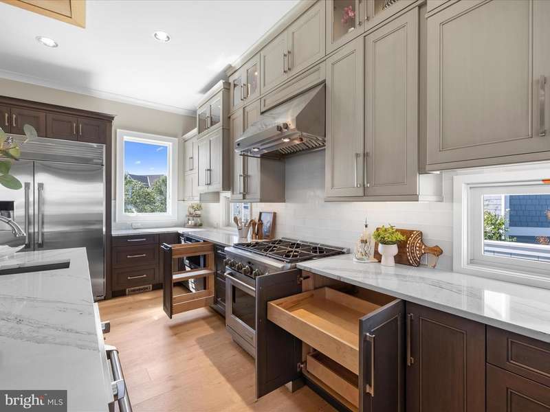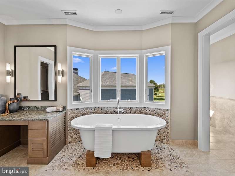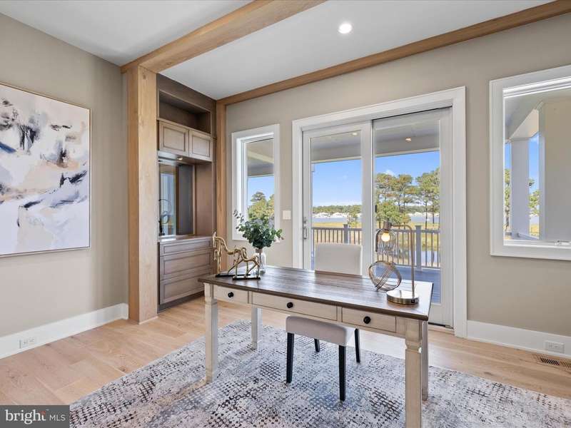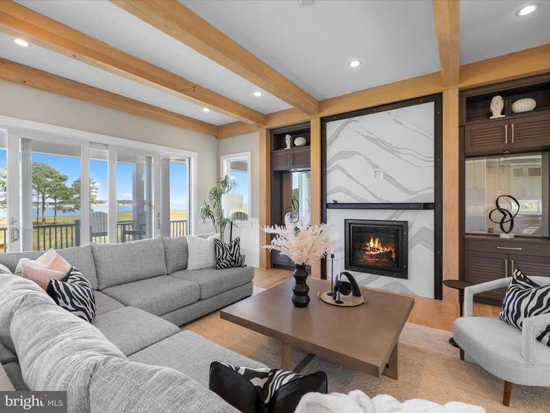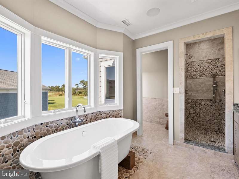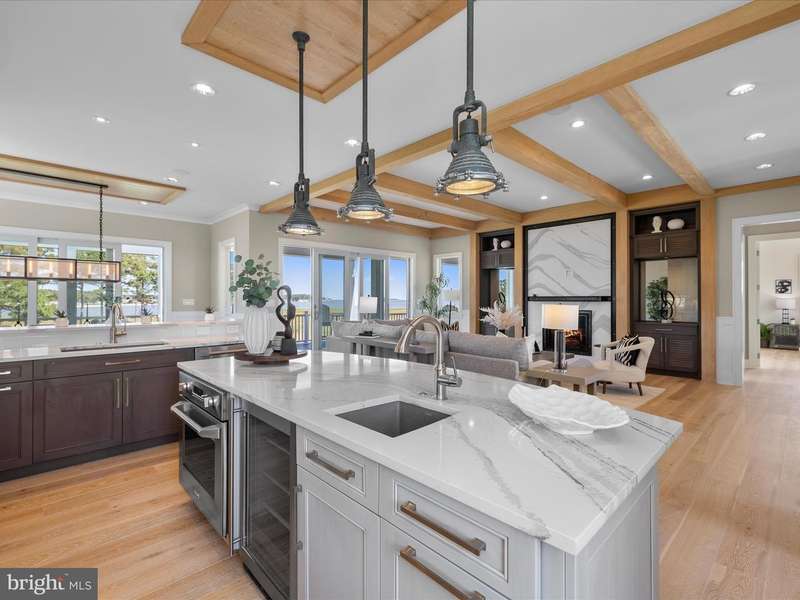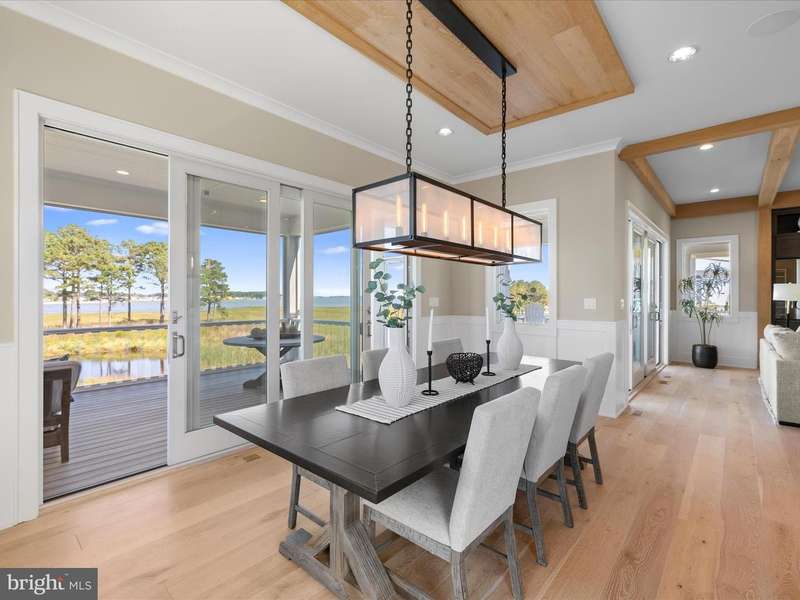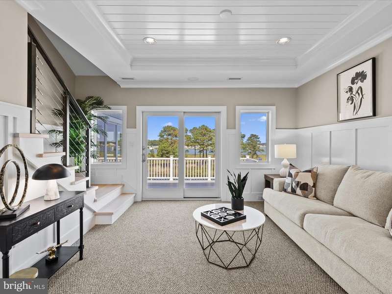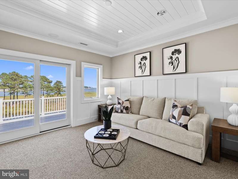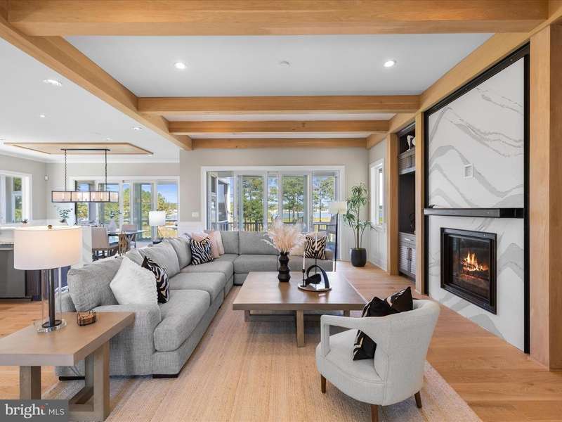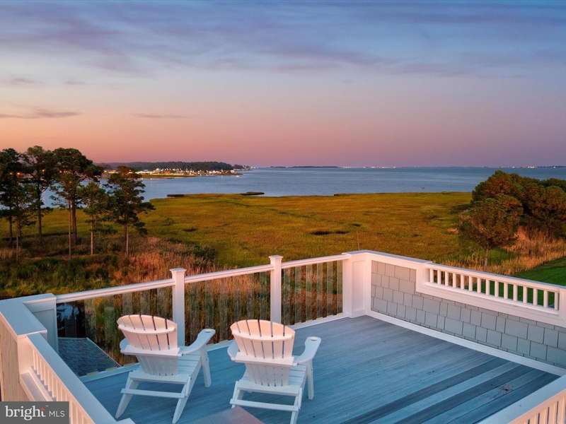 A Sanctuary of Coastal Elegance with Endless Views A one-of-a-kind masterpiece by Echelon Homes, this custom-designed residence marries contemporary coastal style with subtle industrial cues, delivering awe-inspiring luxury at every turn. Nestled within the prestigious Jack Nicklaus Signature Golf Course community of The Peninsula, this extraordinary home rises in the exclusive Sanctuary enclave, perched on the pinnacle of Sand Dollar Drive. Designed to maximize its spectacular position, the residence offers three levels of living with sweeping 360-degree views of the Indian River Bay, Lingo Creek, and the 8th Tee. From the moment you arrive, casual elegance blends seamlessly with quality craftsmanship and coastal sensibility. Wide-plank hardwood floors, shiplap, judges paneling, beamed ceilings, and custom built-ins unify the interiors, while designer lighting adds glimmering sophistication. The main level foyer opens to the great room, where floor-to-ceiling atrium sliders flood the space with natural light, showcase breathtaking views, and extend effortlessly to an expansive balcony deck. The living room is anchored by a soaring quartz-clad fireplace, accented with black steel and flanked by elegant glass-and-wood display cabinets. An open-beamed ceiling heightens the drama, creating a stunning focal point. This central gathering space flows into the gourmet kitchen and dining area, a showcase for both entertaining and daily life. Quartz surfaces span generous work areas and the oversized center island, complete with abundant storage, beverage and wine refrigerators, deep undermount sink, and built-in oven. A striking glass tile backsplash highlights the GE Monogram six-burner range with custom vent hood, while a suite of professional-grade stainless appliances completes the space. A walk-in pantry with custom floor-to-ceiling storage ensures both beauty and function. Dine casually at the breakfast bar, host formal meals in the adjacent dining room, or step through sliders to the screened porch, where dazzling sunsets over the bay make every evening extraordinary. This level also offers a refined home office with balcony access, a stylish hall bath, and the first of five bedrooms, complete with ensuite. Ride the elevator to the primary suite retreat, where panoramic views greet you from bed beneath a soaring cathedral ceiling of shiplap and beams. The spa-inspired ensuite rivals a five-star resort, with two vanities, soaking tub, walk-in shower, private water closet, and dual walk-in closets with abundant storage. Two additional guest suites, each uniquely styled with private ensuites, one with balcony access, ensure comfort for family and friends. A second-floor laundry adds convenience, while a welcoming family room with balcony access serves as the perfect gathering spot. From here, a staircase leads to a bonus loft and the crowning jewel of the home: a rooftop terrace offering unrivaled 360-degree views. The lower level, filled with natural light, high ceilings, and precise millwork, is designed for entertaining. A game and lounge room, sizable guest bedroom, hall bath, second laundry, and mudroom entry complement the oversized two-car garage and additional third garage. Beyond the garages, a pool bath leads to the outdoor oasis. Here, a hardscaped paradise awaits: heated pool, spa, firepit, lounging areas, covered bar patio, and a screened pavilion, all perfectly positioned to embrace the home's remarkable setting. As a resident of The Peninsula, you'll enjoy world-class amenities, including gated security, a stunning clubhouse, the Jack Nicklaus golf course and driving range, a state-of-the-art fitness center with indoor, outdoor, and wave pools, hot tubs, saunas, spa rooms, tennis and pickleball courts, dog park, community garden, nature center, bay beach, fishing pier, and miles of walking trails. Come home to comfort, luxury, and resort living at its finest.