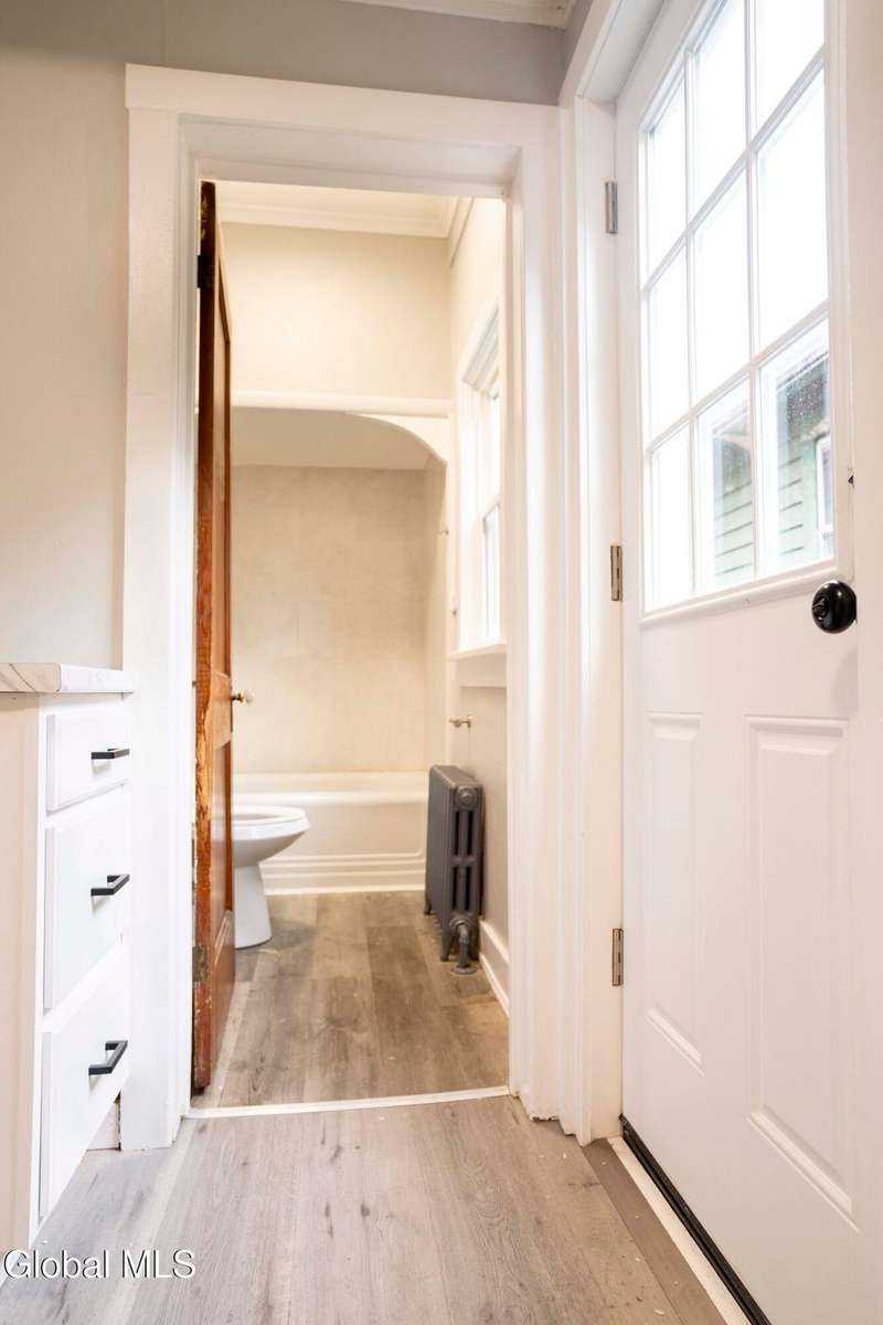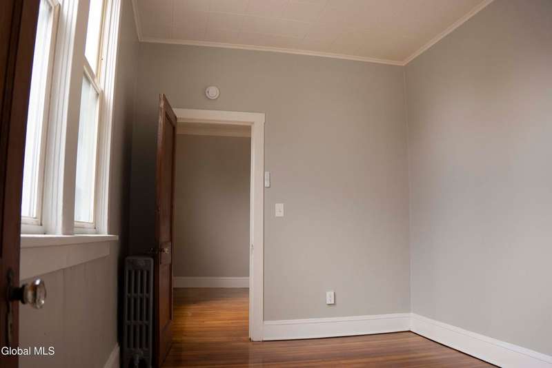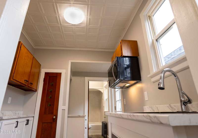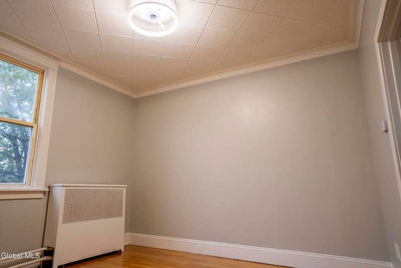 Step into this refurbished 2-bedroom apartment that combines classic charm with modern comfort! Enjoy refinished hardwood floors, tin-style ceilings, and large windows that fill every room with light. Spacious kitchen with new appliances - French door refrigerator, gas stove, and microwave hood. Convenient pantry and built-in ironing board. Elegant China cabinet for storage and display. Walk-in closet for ample storage. New lighting with ceiling fans throughout. Bright and airy living spaces with character and warmth. Across the street from a park with tennis courts and outdoor exercise equipment. Close to shops, restaurants, and offers quick access to major highways - perfect for commuters!