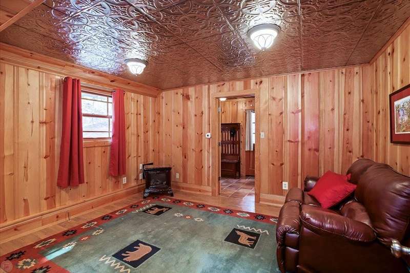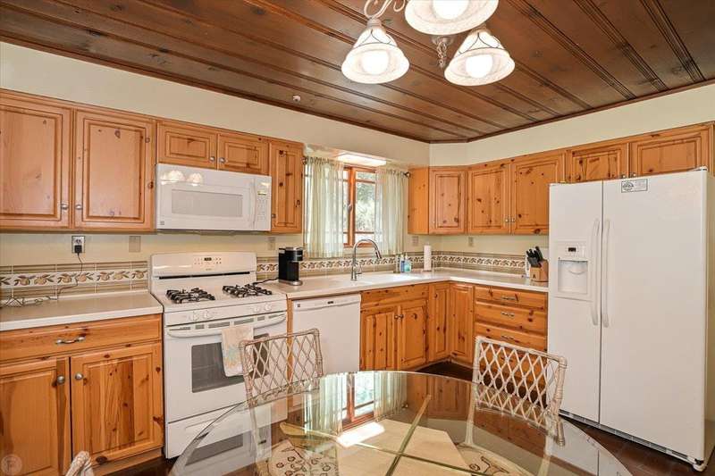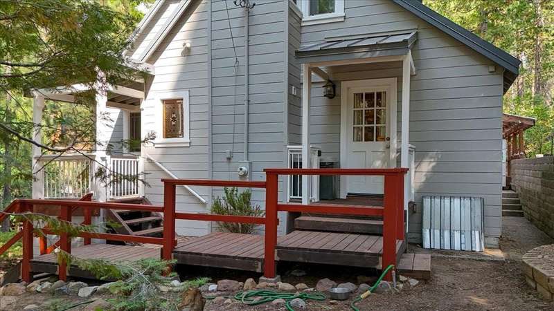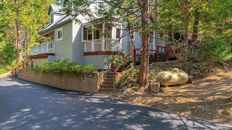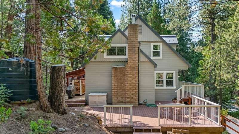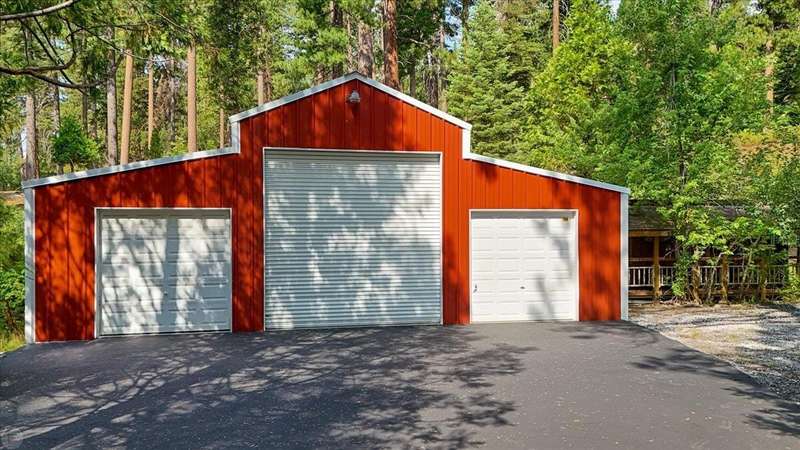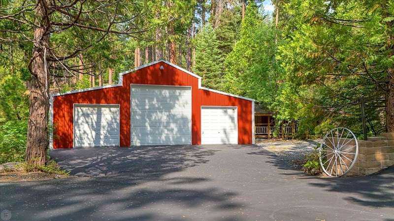 NEW PRICE ADJUSTMENT ON THIS HOME! located in the heart of the Sierras, this charming mountain home offers a perfect blend of rustic elegance and modern convenience. Per Seller, home is over 2400 SFT and features 4 spacious bedrooms with individual sinks and perimeter heating, and provides a cozy retreat for family and guests. Two well-appointed bathrooms ensure comfort and privacy for all. The large, open concept family/dining area is ideal for gatherings, with plenty of room to relax. Extra room for office or TV room if wanted. The large porch surrounding the home offers stunning forest views. Outside, a newer metal 3-car garage provides space for car, boat or trailer along with ample space for storage. A designated workshop caters to hobbyists and DIY enthusiasts. The driveway has been recently repaved and easily holds an RV if necessary. The next-door lot is also included in sale and increases the actual lot size to .74 acre. Located just a short distance from Pinecrest Lake and Dodge Ridge Ski area, this mountain retreat offers easy access to outdoor adventures and year-round recreation. Looking for an Air B&B? This could possibly work!