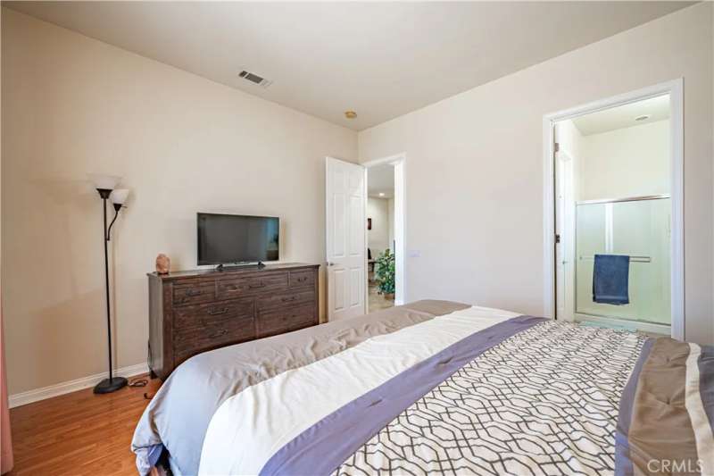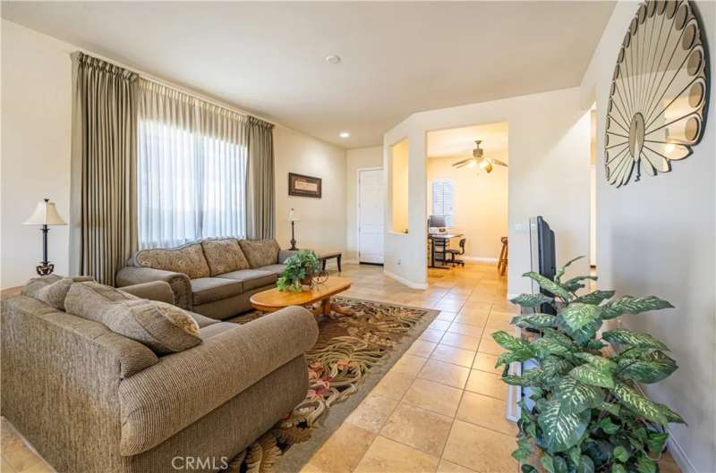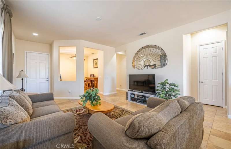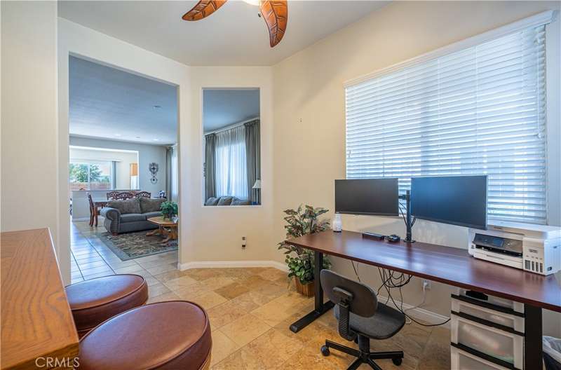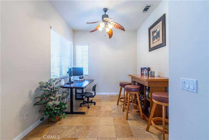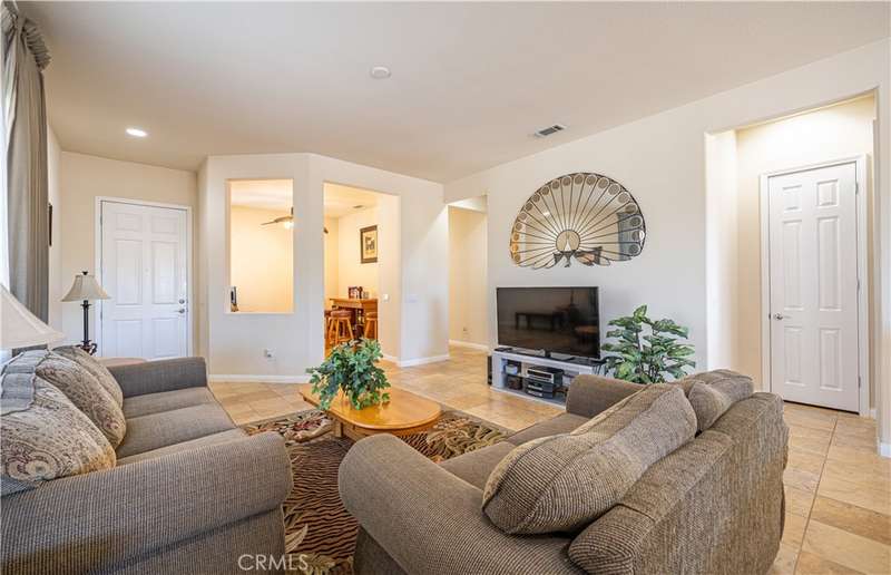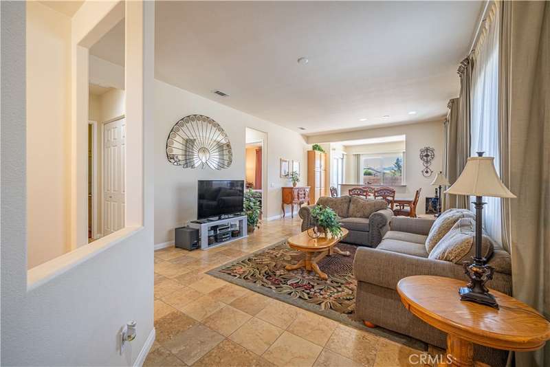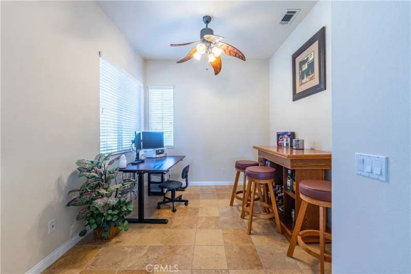Charming 2-bedroom, 2-bathroom home with a versatile den/office, located in the highly desirable gated Solera/Sun City/Del Webb 55+ community. From the moment you step inside, you'll appreciate the open-concept layout, high ceilings and tiled floors in the spacious living and dining areas--perfect for both relaxing and entertaining. The kitchen features abundant cabinetry and a breakfast area for casual dining. A glass sliding door leads to a covered patio, offering a serene space to unwind or entertain, surrounded by a fully fenced, low-maintenance backyard. The generously sized primary suite includes a private bath with dual sinks, a large walk-in shower, and an expansive walk-in closet. A second bedroom and full bath provide comfort and convenience for guests. The additional versatile room can be used as a home office, craft room, gym, or cozy den. Tiled and hardwood floors continue throughout the home. Additional features include an indoor laundry room and a two-car garage with built-in storage cabinets. >>> Enjoy resort-style living with access to community amenities such as pools, a fitness center, tennis courts, bocce ball, and round-the-clock security--all within a beautifully maintained HOA community. This move-in-ready gem offers comfort, convenience, and community. Don't miss the opportunity to make it yours!