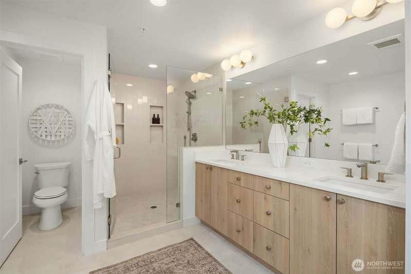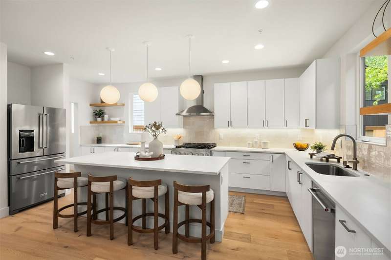 ID Construction Group presents this new construction Kirkland home. Enter into main floor with thoughtfully designed mudroom for ultimate organization. Great room offers large gas fireplace, chef's kitchen with bespoke matte quartz counters, and access to landscaped yard with patio. Private office completes this level. Upstairs, find your family/bonus room, two additional bedrooms & full bath, plus dedicated laundry with included w/d. Expansive primary suite includes ample room for king bed, two walk-in closets & full bath with heated floors. 2-car EV-ready garage. Near to Juanita lakefront parks & McAuliffe Park, plus top-rated Lake Washington School District, & just 10 min to Totem Lake Village.