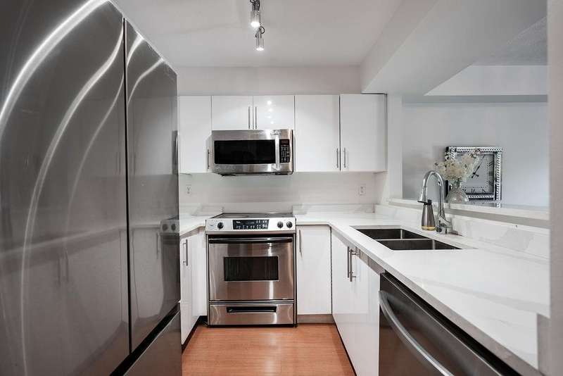 Freshly renovated and move-in ready, this home makes everyday life simple and enjoyable. The kitchen has been updated for modern living, the spacious open layout flows naturally, and your private balcony looks out to a peaceful, tree-lined street, a rare sense of calm and safety in the city. You'll also have in-suite laundry, secure parking, and extra storage, with a building that's pet- and rental-friendly, complete with bike storage and a guest suite for visitors. All of this in Queen Mary Park, one of Surrey's most walkable neighbourhoods. Groceries, cafés, restaurants, parks, and transit are all just steps away, so you can leave the car behind and enjoy the convenience of having everything right at your door. Parking and Locker included. Photos virtually staged to show layout & potential. Original empty photos included for reference. (id:58403)