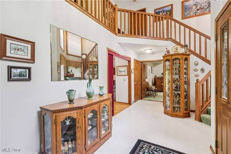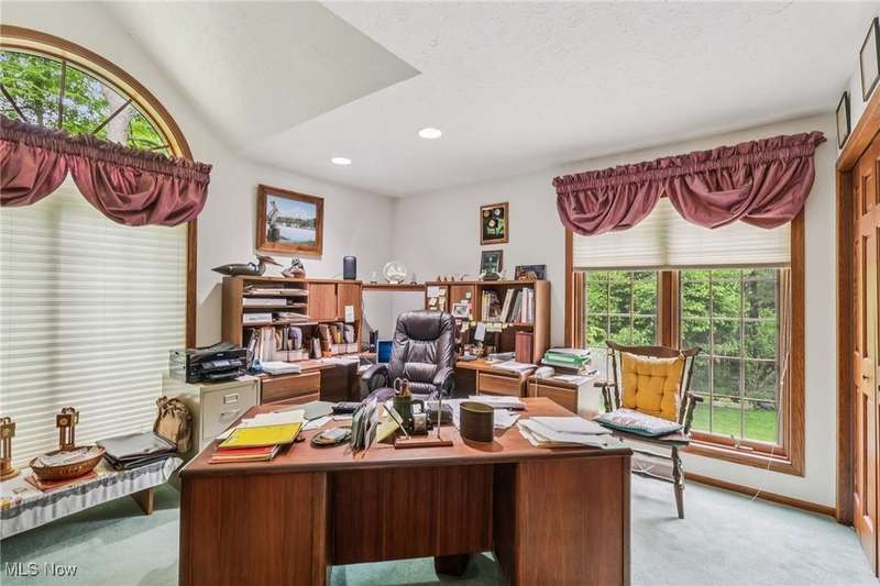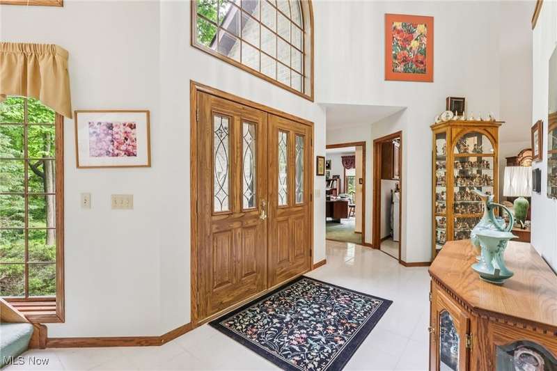 If you desire privacy and the most spectacular setting bordering the Lake Metroparks, then this property is for you! Almost 10 acres of natural beauty, this amazing property features a fabulous home that is nestled into its natural setting! A wonderful floor plan features a first floor owner's suite, large great room area, and lovely kitchen/family room. A dramatic foyer sets the stage for this home and opens into the vaulted ceiling great room which is perfect for entertaining featuring a soaring ceiling and walls of windows. The kitchen is the heart of this home and opens into the cozy family room which is highlighted by a gorgeous stone fireplace wall. There is a library which can be used as a 4th bedroom and has access to a full bathroom. The owner's suite is private and luxurious with a glamour bathroom and two walk-in closets. The second floor features a dramatic lofted sitting area overlooking the great room, two bedrooms, and a full bathroom. The lower level has a finished recreation room, full bathroom, and an incredible workshop. This area can also function as a separate in-law suite. There is even a 4+ car attached garage. Summers will be enjoyed on the spectacular multi-level deck or in the gazebo which overlooks a beautiful pond. In addition, there are two separate out buildings. One is a storage shed and one is a large barn(can have multiple uses.) This is a truly amazing property offering someone total privacy and seclusion.