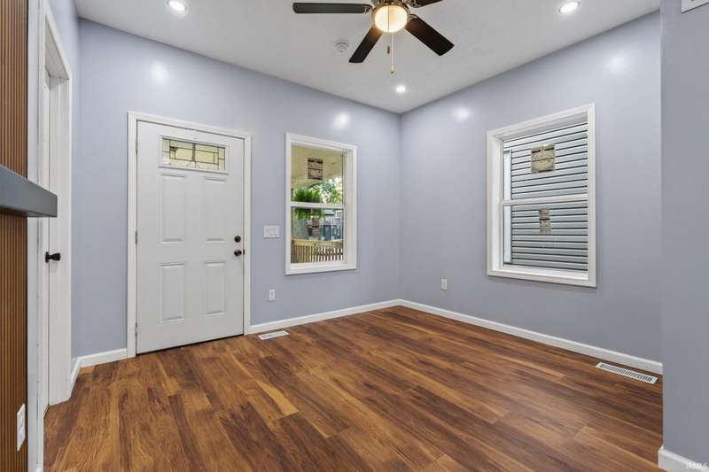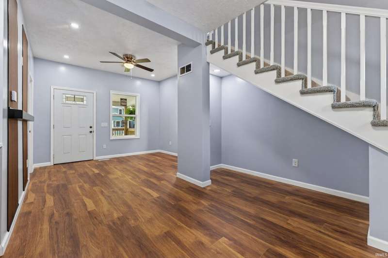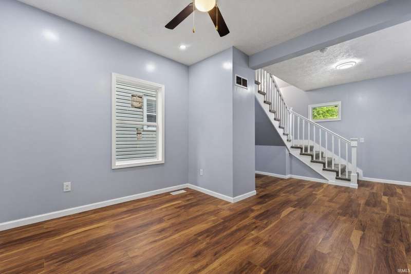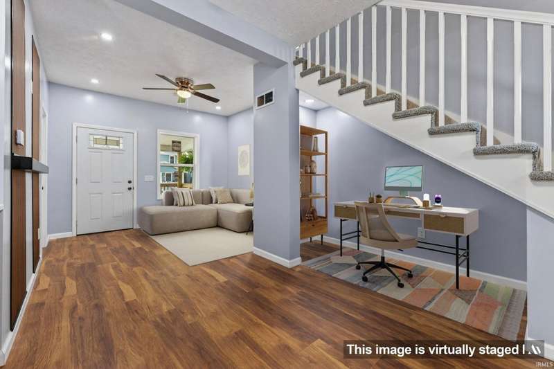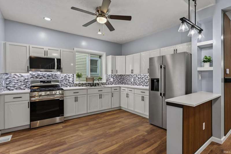 * Open House 9/7/2025 2PM-4PM *Back on the market at no fault of the seller. Fully remodeled 3-bedroom, 1.5-bath home in the heart of Elkhart! This move-in ready property offers a spacious and functional layout with one bedroom and a half bath on the main level, and two additional bedrooms plus a full bath upstairs. The large, updated kitchen features brand-new stainless steel appliances, tile backsplash, white cabinetry, and a breakfast bar. New flooring throughout, updated fixtures, fresh paint, and a brand-new A/C unit. Under-stair bonus space staged as a home office. Upstairs, you'll find a convenient laundry area and a versatile loft space?perfect as a second living area, reading nook, or home office. Enjoy morning coffee on the inviting covered front porch or relax in the fully sodded backyard. Off-street parking, storage shed, new Pella windows, new siding, and fresh landscaping complete the package. Conveniently located near downtown Elkhart, schools, parks, and shopping.