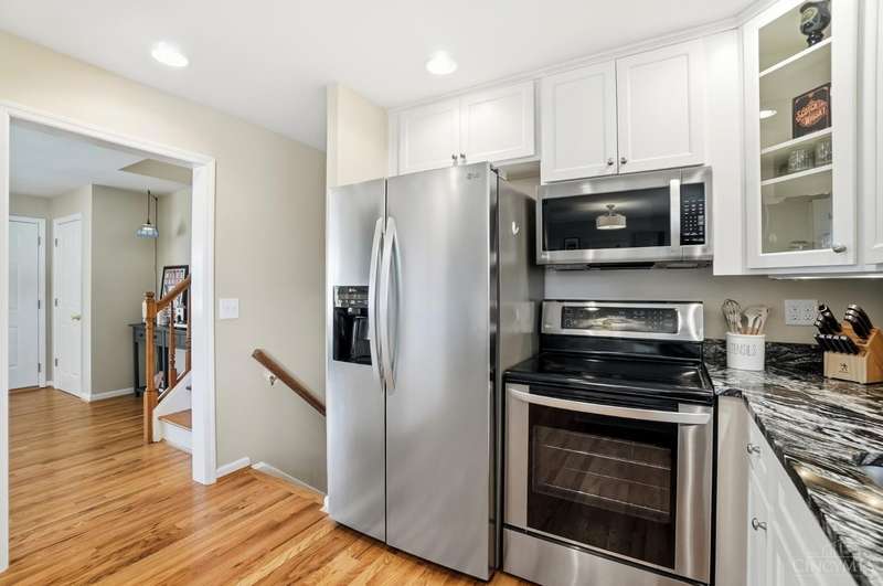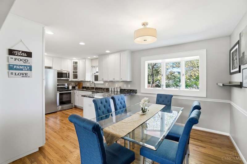 Spacious quad-level home tucked away on a quiet no-outlet street in Oak Hills Schools! Enjoy an updated kitchen with modern finishes, a new roof for peace of mind, and a convenient 2-car garage w/ new door. The versatile multi-level layout w/ hardwood floors offers room for entertaining, working from home, or relaxing in comfort. The family room features beautiful woodworking, gas fireplace w/ walkout to deck and fenced yard. The primary suite boasts 2 spacious closets & a full bath for convenience & privacy. The lower level recreation room offers new carpeting, laundry room & half bathroom. A spacious and inviting front porch welcomes you home, setting the tone for comfortable living and great curb appeal.