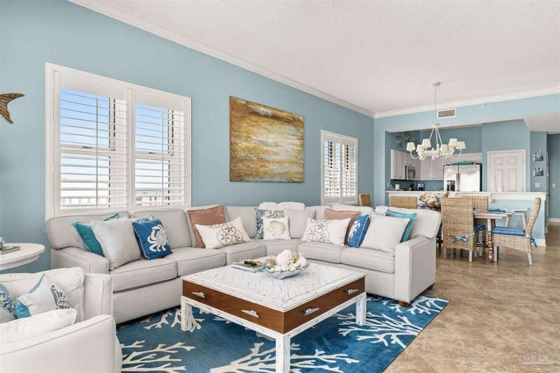 Welcome to your dream Beach ESCAPE on the west end of Windemere-where stunning Gulf views meet serene privacy. This beautifully furnished 4-bedroom, 4-bath condo offers the perfect blend of coastal elegance and comfort, ideal as a vacation retreat or income-generating investment. This WONDERFULLY MAINTAINED condo residence has been out of the rental pool for 9 years and it shows in the condition. It has 10' ceilings, stainless-steel appliances, white cabinets throughout, tile floors in all living areas and bathrooms, plantation shutters, and coastal decor and comes with a covered GARAGE SPACE. There are TWO PRIMARY GULF FRONT suites with king beds...one bath has dual vanities, jetted tub and a separate shower and the other dual vanities, oversized garden tub/shower combo and water closet. Every bedroom features an en-suite bath, including two additional guest suites with queen beds and private bathrooms...one with a large vanity and shower and the second with a shower/tub combo. There is a separate laundry room, abundant storage inside and also includes two storage rooms on the breezeway approx 4' x 4' in size. Enjoy the spacious wrap-around balcony to soak in the sights and sounds of the Gulf. The Updates: HVAC (2018) with new compressor (2025), dishwasher and water heater (2023) and more. The Windemere complex boasts 300' of sugar white sand beach, features a swimming pool on the 3rd level, hot tub, exercise room, 1500 square foot conference room with kitchen, 3 high speed elevators as well as a full-time maintenance department. And with the new bike/walk path along Perdido Key Dr, you can sun on the beach or head to nearby restaurants and shops. Rental projections are $78-123K gross per year depending upon usage. Don't miss your chance to own a slice of paradise!
