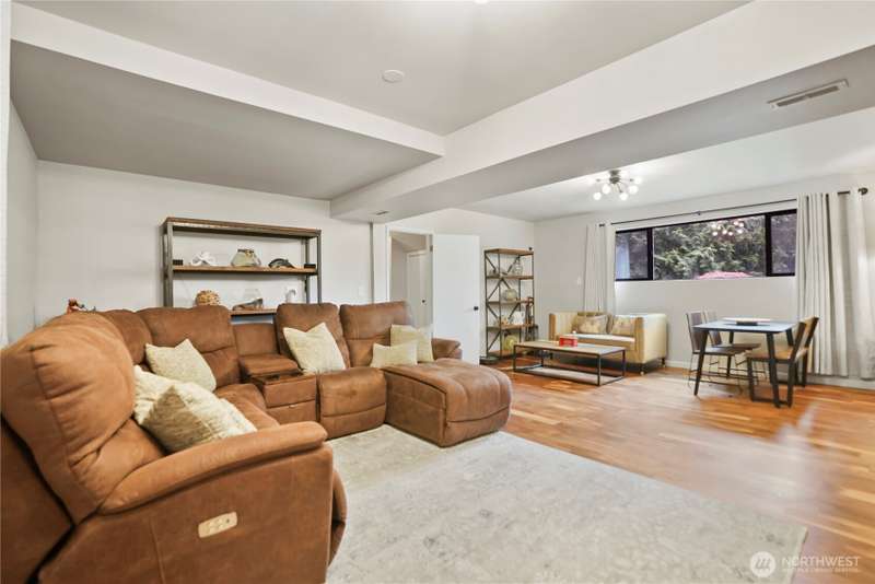 PRICE ADJUSTMENT!! Puget Sound and Olympic Mountain views in the sought-after Norma Beach area! This well-maintained home lives larger than expected and sits on a generous lot—ideal for gardens, play, or relaxing outdoors. Thoughtful updates include striking acacia hardwood floors, stainless steel appliances, and interior & exterior painting. The main level opens to a spacious TREX deck off the dining room—perfect for quiet evenings or entertaining. Downstairs offers a large bonus room with fireplace and a flexible fourth bedroom or craft space. The primary suite features a private ¾ bath. Double-car garage & extra street parking. A rare blend of space, style, and views! Pre-inspected for your convenience!