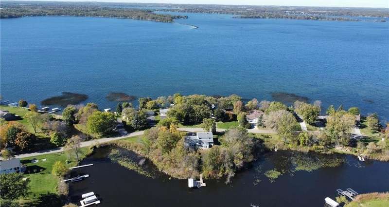 Welcome to island living! The moment you cross onto the island you're greeted by this beautiful Southern Colonial inspired home with 360° views of the water. This home has been extensively remodeled with almost no surface untouched, including custom Patnode cabinets w/ stone countertops, hardwood flooring, an amazing outdoor kitchen entertainment area plus another back deck wired for a hot tub, and 2 more garage stalls were added for total of 4 to name a few. The extent of updates to this home is truly incredible & too much to list here, see the supplement list with the disclosures. With water views from nearly every window in this home, it has that true island vibe. Enjoy having 350ft of shoreline on Lake Le Homme Dieu, and being on the protected East side of the island you won't have to worry about removing and installing your dock and boat lifts every season, oh and by the way the dock and boat lifts are included. And to further make your move to lake all inclusive, the 2024 Yamaha 222XE surf boat is negotiable. This home is 1 of 9 homes with the unique "island life" on Le Homme Dieu with this one being the only house on the calm waters of the East side. In the summer months enjoy the privacy the surrounding trees provide as you relax on your decks, this truly unique one-of-a-kind lake home really does capture the essence of lake life on the chain with the added privacy of living on a low traffic dead-end road. Come see what this beautiful home has to offer!