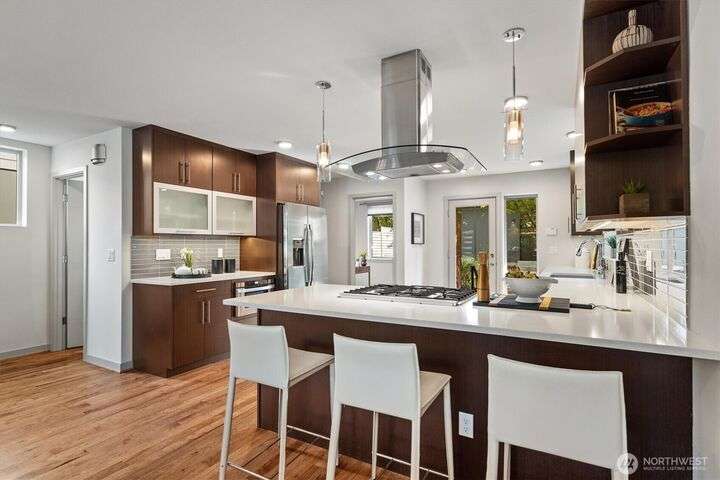 This is the only active listing in NE Seattle priced from $1M to $1.5M built after 2017 that is a STAND ALONE HOME that is not a condominium or townhome! Chic, modern & eminently livable masterpiece NEWER home that will knock yours socks off! Composed of unequaled quality, detail & personality. Fabulous floor plan with 3 spacious bedrooms on 2nd floor. Lavish primary suite! Huge open top of line kitchen is built for cooking & entertaining. Main level den/office. Eye catching details throughout. Vaulted ceilings. This sublime residence offers every conceivable amenity for contemporary living at its finest! High efficiency heating & cooling. Detached 2 car garage. Fenced backyard with patio. Minutes to Children's, UW, 520, downtown & Amazon