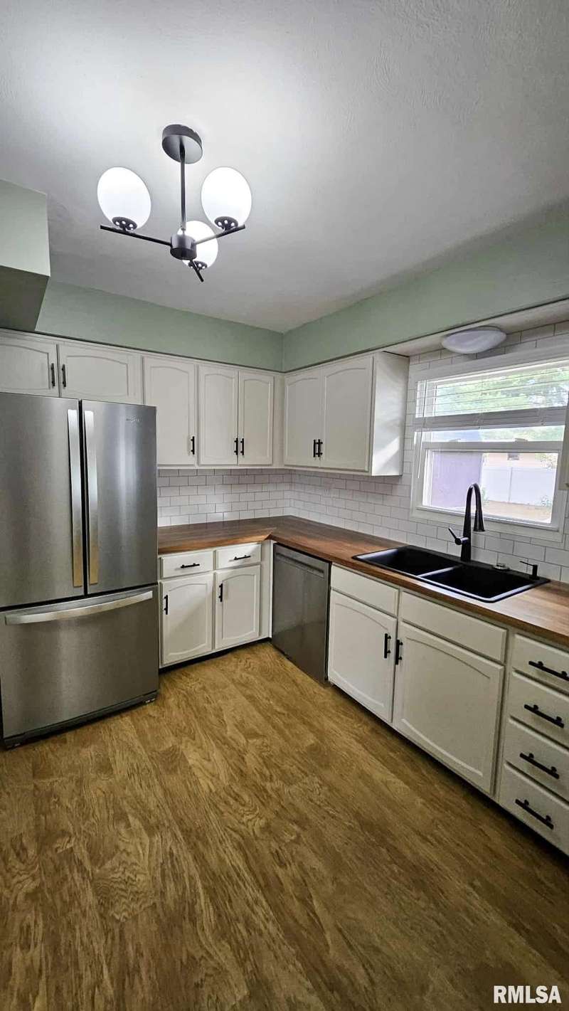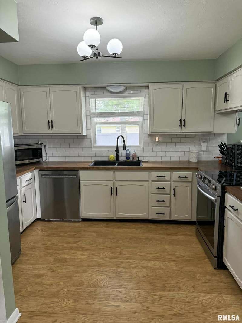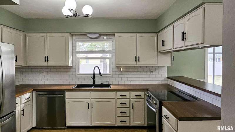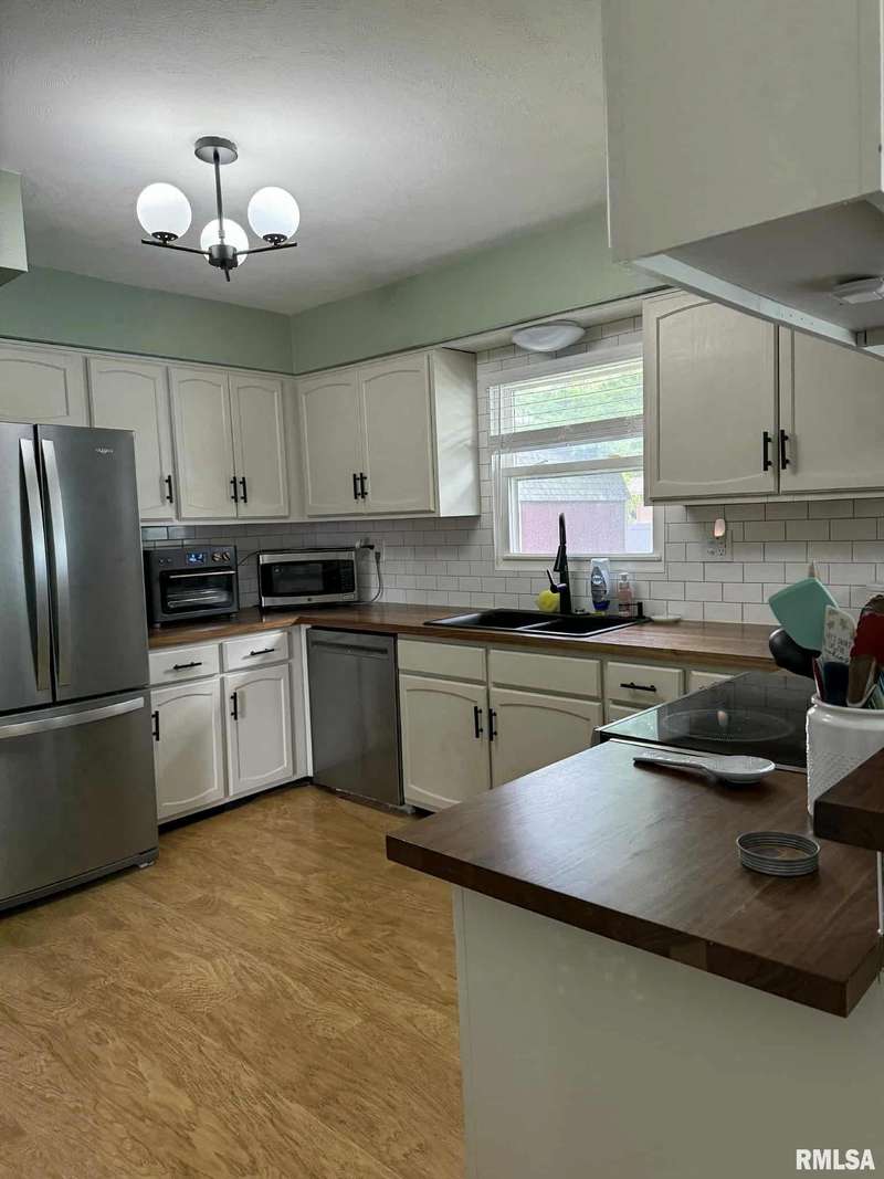 LOVELY updated 3 bedroom, possible 4th in the lower level, 2 full bath Home with upper bath having gorgeous new double vanity added! The kitchen has tastefully been updated with new backsplash, wood counters and breakfast bar and pantry has laundry hook ups if you need a main floor laundry. The other hook ups are located in lower-level full bathroom. The fireplace in family room has never been used and not functional. Home has new flooring in upper level and living room along with some freshly painted walls! The family room in lower level has new ceiling. The owner has put up a beautiful new privacy fence around the whole back yard where you can host family and friends on the large, covered deck or have a great yard for kids and pets!! A newer shed for storage! HVAC new in 21', Newer siding, roof, gutters, gutter guards.