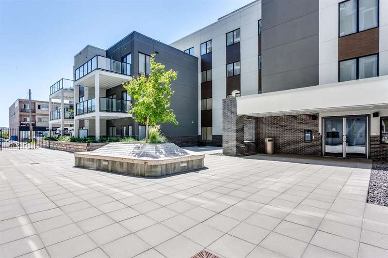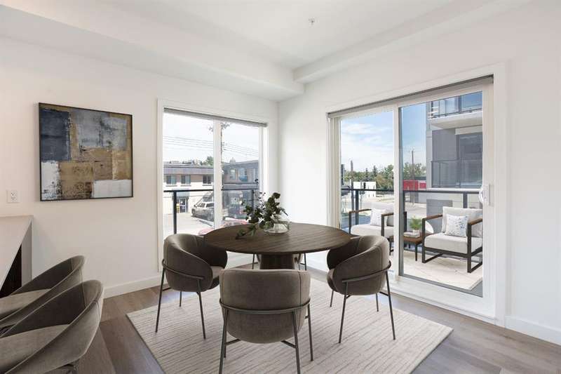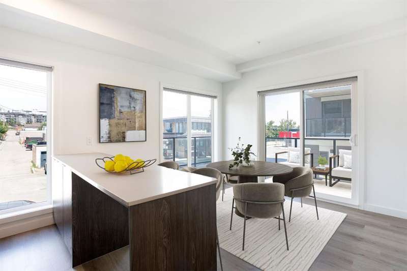 Welcome to your new corner unit located at 202, 455 1 Avenue, a stunning Air BnB friendly, modern condo. Minto partnered with PCL, to design and construct this 2023 building, that perfectly blends style, comfort, and convenience. This bright and airy 2-bedroom, 2-bathroom home features a contemporary open-concept layout with large windows that flood the space with natural light. The sleek kitchen is designed with functionality and aesthetics in mind, offering an island with an eating bar, perfect for casual dining or entertaining. A spacious dining area flows seamlessly into the cozy yet open living room, creating a welcoming atmosphere for both everyday living and hosting guests. Step out onto the expansive private large wrap around balcony—ideal for morning coffee, evening relaxation, or summer BBQs. The primary bedroom is a true retreat, complete with a private 4-piece ensuite, while the second bedroom and bathroom provide comfort and flexibility for guests, a home office, or growing families. Thoughtfully designed with modern finishes throughout, this unit offers a perfect blend of practicality and style, making day-to-day living both easy and enjoyable. Situated in a desirable, amenity-rich neighborhood, this location offers the best of both convenience and lifestyle. Just steps from your door, you'll find an array of local cafes, restaurants, and boutique shops that give the area its unique charm. Enjoy leisurely strolls or active outings along nearby riverside pathways and green spaces, or take advantage of the close proximity to fitness centers, grocery stores, and essential services. Public transit is easily accessible, simplifying your commute whether you're headed downtown or exploring the city. With everything you need within reach—including your own spacious balcony oasis—this is a home that truly delivers on comfort, location, and modern living.
