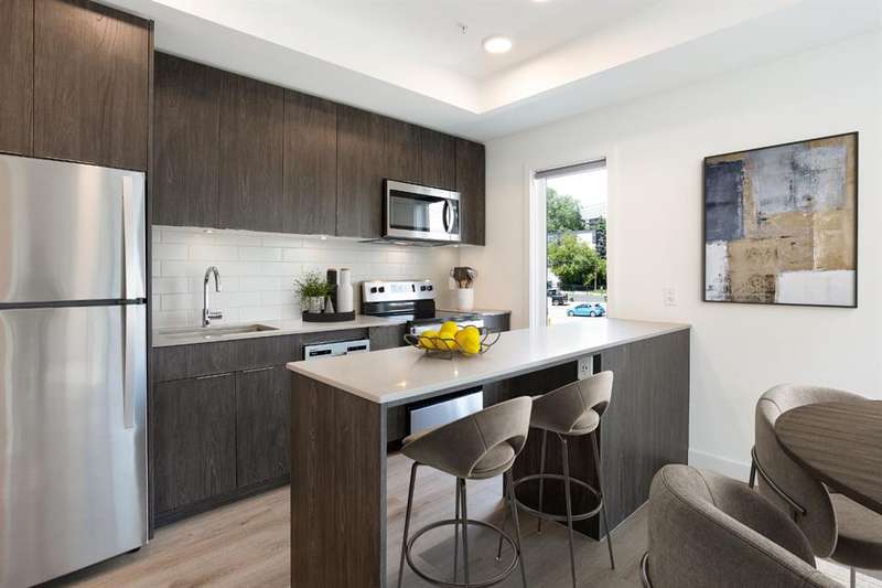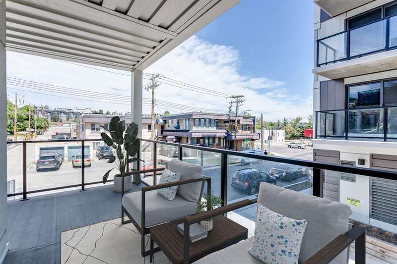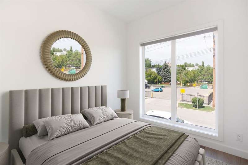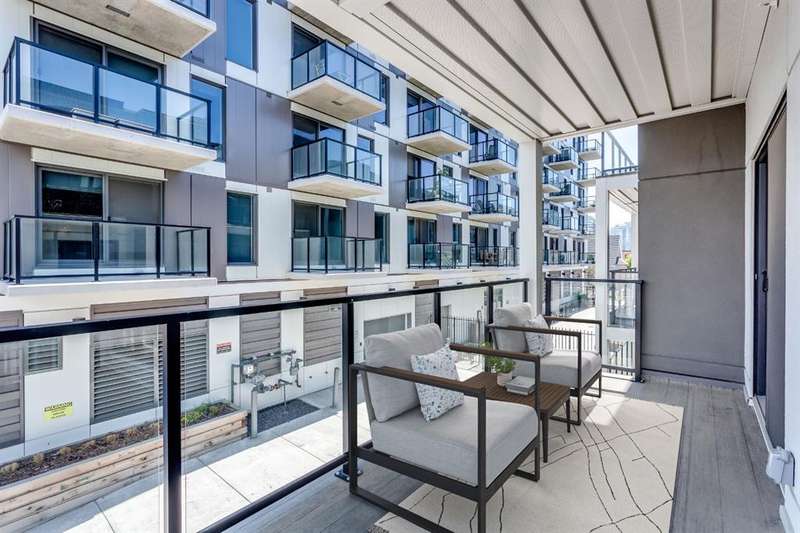 Welcome to your new corner unit located at 202, 455 1 Avenue, a stunning Air BnB friendly, modern condo. Minto partnered with PCL, to design and construct this 2023 building, that perfectly blends style, comfort, and convenience. This bright and airy 2-bedroom, 2-bathroom home features a contemporary open-concept layout with large windows that flood the space with natural light. The sleek kitchen is designed with functionality and aesthetics in mind, offering an island with an eating bar, perfect for casual dining or entertaining. A spacious dining area flows seamlessly into the cozy yet open living room, creating a welcoming atmosphere for both everyday living and hosting guests. Step out onto the expansive private large wrap around balcony—ideal for morning coffee, evening relaxation, or summer BBQs. The primary bedroom is a true retreat, complete with a private 4-piece ensuite, while the second bedroom and bathroom provide comfort and flexibility for guests, a home office, or growing families. Thoughtfully designed with modern finishes throughout, this unit offers a perfect blend of practicality and style, making day-to-day living both easy and enjoyable. Situated in a desirable, amenity-rich neighborhood, this location offers the best of both convenience and lifestyle. Just steps from your door, you'll find an array of local cafes, restaurants, and boutique shops that give the area its unique charm. Enjoy leisurely strolls or active outings along nearby riverside pathways and green spaces, or take advantage of the close proximity to fitness centers, grocery stores, and essential services. Public transit is easily accessible, simplifying your commute whether you're headed downtown or exploring the city. With everything you need within reach—including your own spacious balcony oasis—this is a home that truly delivers on comfort, location, and modern living.