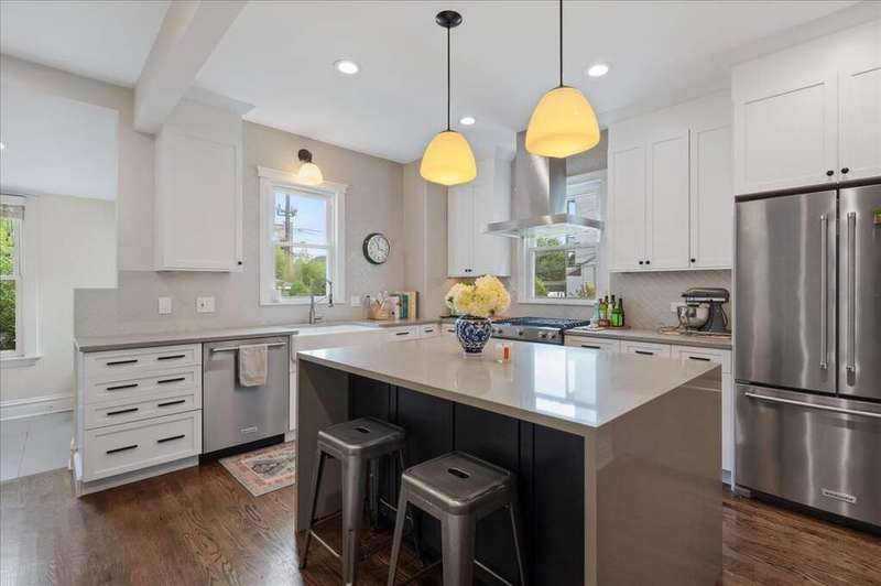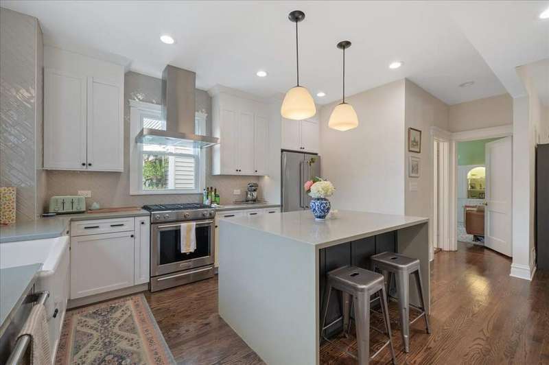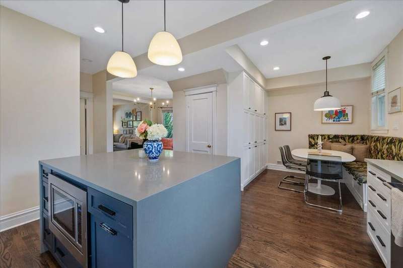 Welcome to this updated single family home in Lincoln Square. Enter first from the charming front porch into the home, where on the main level the open layout features a cozy living room, separate dining room, huge kitchen and attached breakfast nook. This 2018 updated kitchen features custom cabinets, stainless steel appliances, farm sink, quartz counters, large waterfall island and tons of storage. And you'll enjoy breakfast in the adorable nook with built-in booth right off the kitchen. Adjacent to the living room is a first floor office/bedroom with full bathroom. The second floor features the primary bedroom with skylights and custom solar shades bringing in tons of natural light. There is one bathroom on this level, which has a walk-in fully tiled shower, skylight and great storage. Additionally, there is a small second bedroom currently used as a nursery. Back downstairs, the finished basement has a super cozy family/media room with theatre seats as well as the 4th bedroom, full bath with walk-in shower, flex room for storage and laundry room with side by side W/D. This home is situated on an oversized 30 x 150 lot with a large deck off the mudroom, huge back yard, welcoming outdoor patio and two-car garage. Winona is a quiet tree-lined street close to tons of restaurants, shopping and all Lincoln Square has to offer.