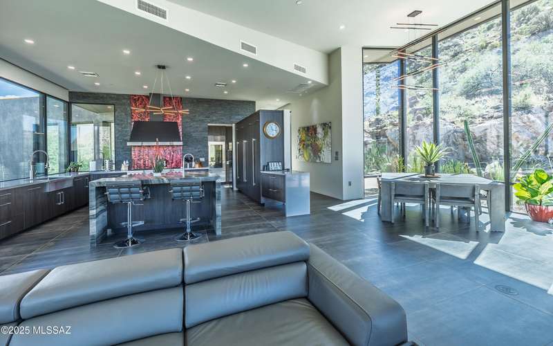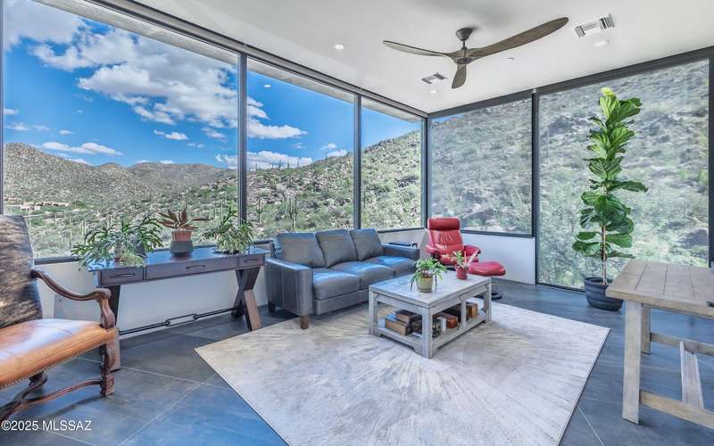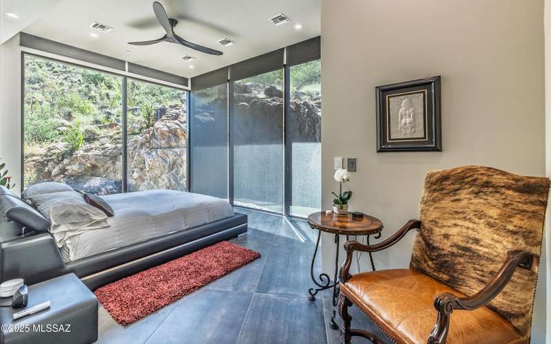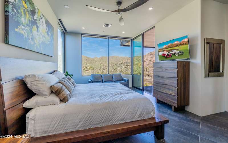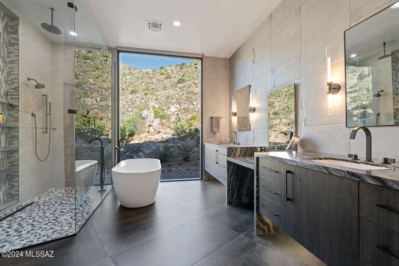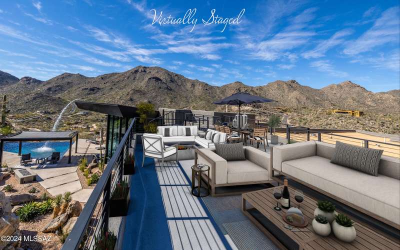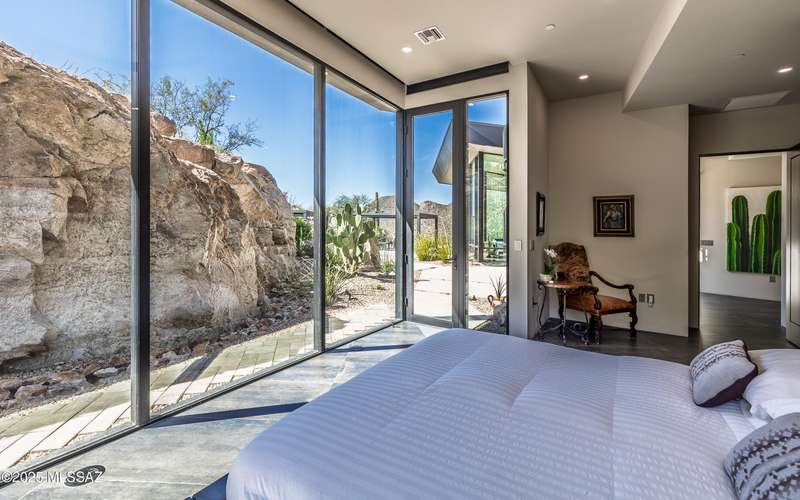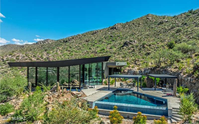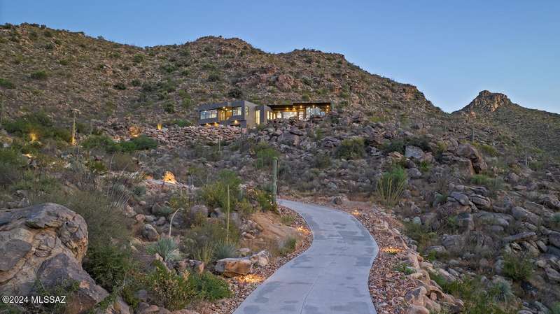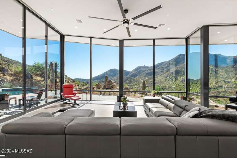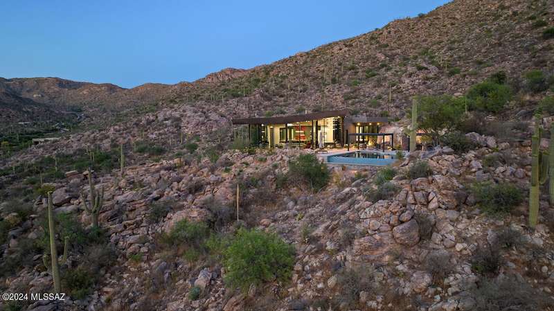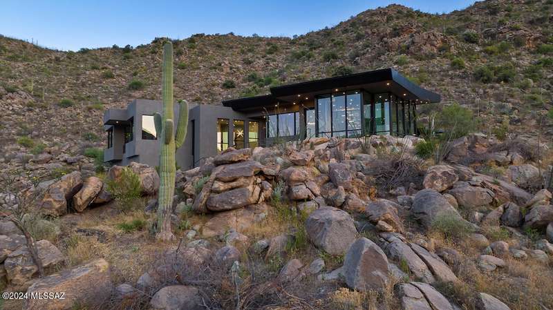 Come visit this custom Desert Modern residence within the man-gated community of Canyon Pass at Dove Mountain. Situated on a gentle rise above other neighboring homesites, this 9+ acre residence is positioned within large Sonoran Desert rock outcroppings providing unobstructed views in all directions. The 'open floor plan' was designed by Mark Soloway w/high ceilings + oversized floor to ceiling glass panes. The residence provides unlimited views yet creates a feeling of privacy and exceptional solitude. High end finishes throughout this custom masterpiece include Subzero/Wolf appliances, Lutron shades and comes fully furnished including a baby grand piano, artwork and electronic accessories. A stylish glass pneumatic elevator provides access to and from the lower level which contains