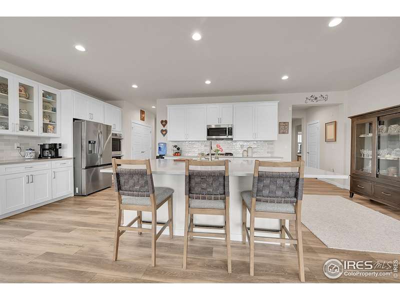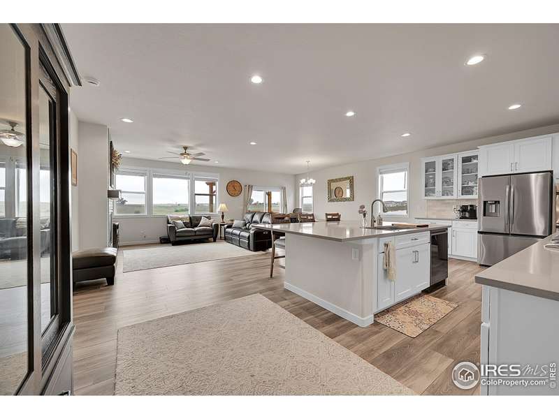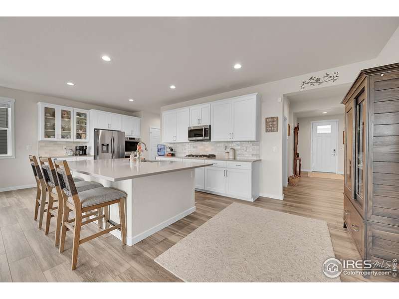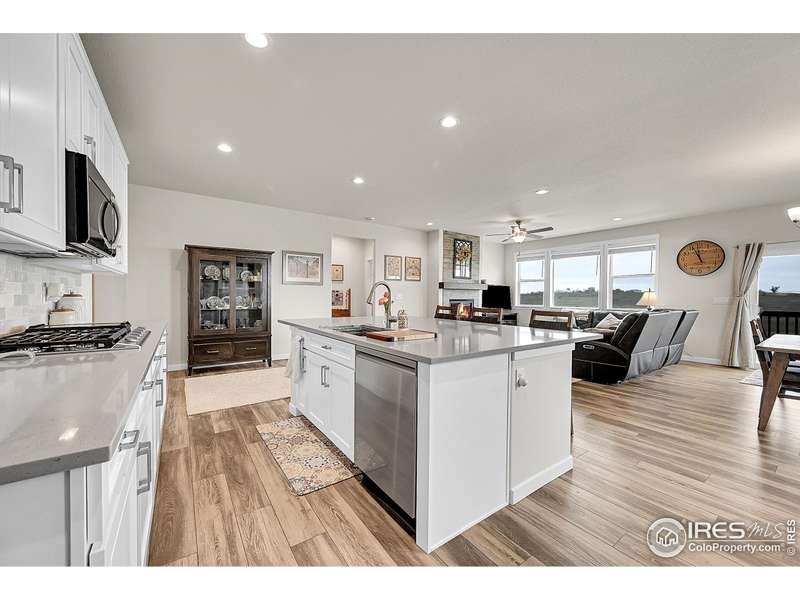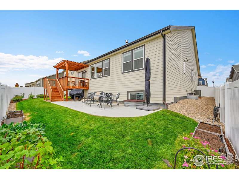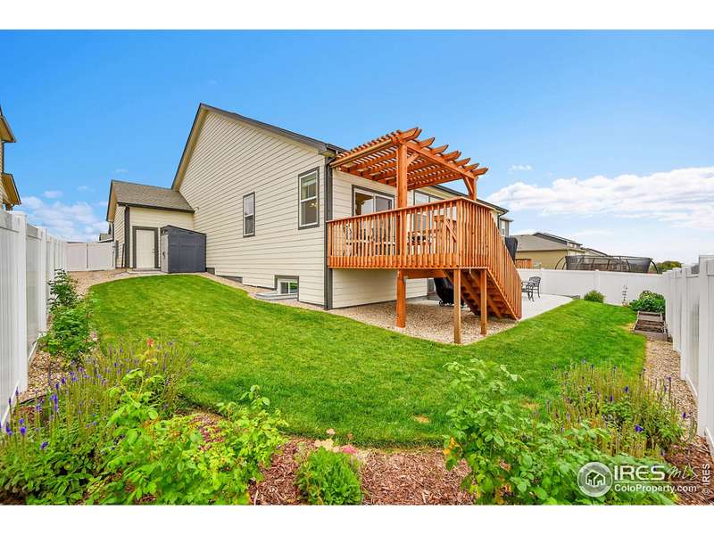 Sellers are offering a $13,700 concession! This better than new 5-bedroom, 3-bath Ranch home is move-in ready and packed with thoughtful upgrades. The open main level showcases a custom gas fireplace with blower and remote, upgraded cabinetry throughout, pull-out drawers in all lower kitchen cabinets, and a stylish tile backsplash. Added features include ceiling fans with remotes, laundry room cabinets, and custom window framing. Step outside to a walkout deck with a covered pergola, retractable shade, and stairs leading to a spacious concrete patio, perfect for enjoying beautiful mountain views. The fully fenced backyard features raised garden beds with irrigation and a storage shed, while the spacious 3-car garage with storage cabinets offers plenty of room for vehicles and gear. A daylight basement plumbed for a wet bar, on-demand hot water heater, and full radon mitigation system complete this exceptional home that perfectly combines comfort, function, and style.