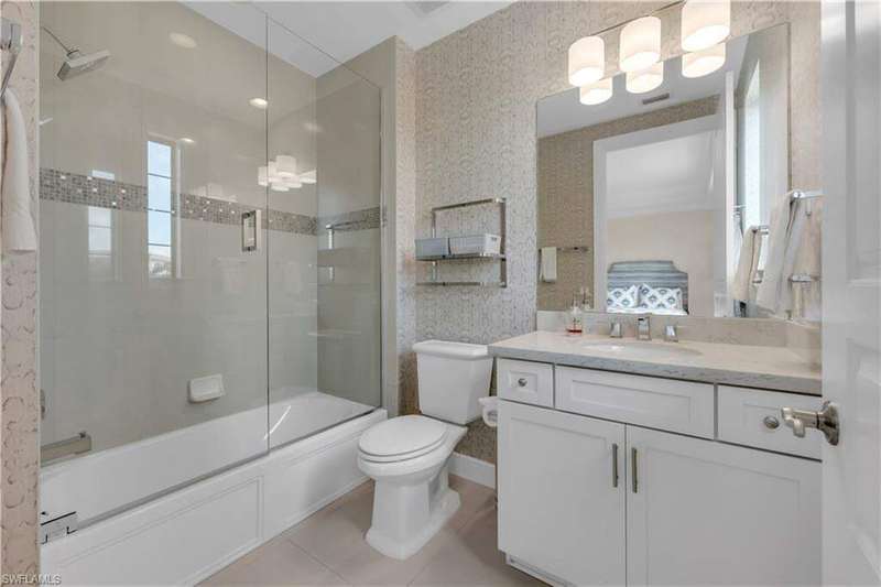 Esperanza at Tiburon - Professionally-Decorated Turnkey-Furnished Top-Floor Luxury Residence with Golf Membership Immediately Available. Experience refined Naples living in this beautifully updated and Clive Daniel-decorated penthouse-level residence in the sought-after Esperanza at Tiburon, home to the Ritz-Carlton Golf Resort and two Greg Norman-designed championship golf courses. This immaculate three-bedroom, three-and-a-half-bath end unit combines sophisticated design with serene privacy-no units above and panoramic preserve views that provide tranquility from sunrise to sunset. An inviting open-concept great room features soaring ceilings, custom millwork, high-end artwork and designer finishes throughout. The chef's kitchen offers white cabinetry, matching quartz countertops, high-end appliances, and a spacious island perfect for casual dining or entertaining. A formal dining area flows seamlessly to the expansive screened lanai, an ideal retreat for morning coffee or relaxing evenings surrounded by a lush tropical backdrop. The primary suite serves as a private sanctuary with lanai access, a large custom-fitted walk-in closet, and a spa-inspired bath with dual vanities, soaking tub, and frameless glass shower. Two guest suites, each with its own ensuite bath and walk-in closet, ensure comfort and privacy, while the den with a private balcony provides flexible space for work or relaxation. Additional highlights include wood and tile flooring, designer lighting, plantation shutters, a private elevator that opens directly into the residence, and hurricane protection provided by impact glass windows and doors, as well as storm screens out on the patio. Under building garage with two assigned parking spaces and private storage room provide convenience and security. Offered turnkey furnished, the home showcases a curated collection of high-end pieces balancing sophistication and coastal warmth-move right in and enjoy the Tiburon lifestyle. Residents of Esperanza enjoy resort-style amenities including a tropical pool and spa, grilling area, and private clubhouse. Optional Tiburon Golf Club memberships provide access to 36 holes of world-class golf, tennis, fitness center with personal trainers, spa services, concierge, and dining. Owners also enjoy privileges at both Ritz-Carlton resorts and a private shuttle to the beach with chairs, umbrellas, and towels provided. Ideally located in North Naples, just minutes from Mercato, Waterside Shops, white-sand beaches, and downtown Naples, this top-floor corner residence offers exceptional natural light, breathtaking preserve vistas, and a rare sense of single-family privacy within one of Naples' premier resort communities. Lives like a single-family home - penthouse privacy, resort amenities, and timeless elegance in the heart of Tiburon.