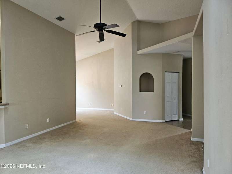 You will love this beautiful 3 Bed @ Bath Home located in the Rivergate at Palm Coast Community. This home offers a big living area, separate dining area, eat-in kitchen, lovely master bed with tray ceiling and carpet, a large master bath with double sinks and walk-in shower, separate water closet, Stainless Refrigerator and Dishwasher, White range and microwave, loads of counter space, breakfast bar, new vinyl plank in the living area, ceiling fans, inside laundry area with washer and dryer hook-ups and a 2 car garage. You can enjoy your fall evenings by relaxing and watching the pristine water in the pond from your screened in patio. Call today for more information.