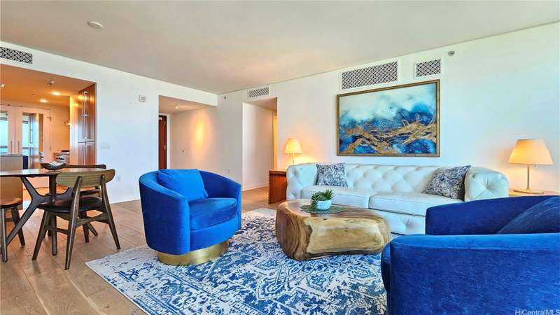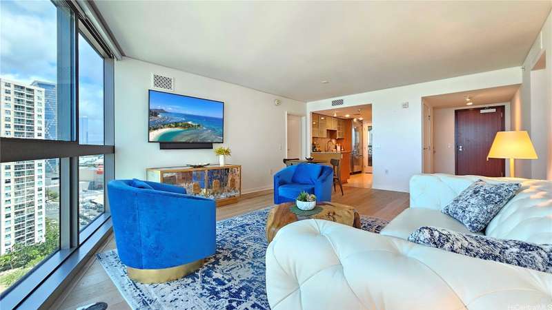 Located in the heart of Honolulu, this move-in ready, furnished residence offers ultimate convenience—just steps from shopping, popular restaurants, and entertainment. Enjoy easy access to everything you need in a luxury building with resort-style amenities. Inside, you'll find engineered oak flooring in the living area, Viking appliances including a gas stove, and automactic shades for added comfort. The unit also comes with two covered parking stalls. Clean, stylish, and well-maintained—urban living at its finest.