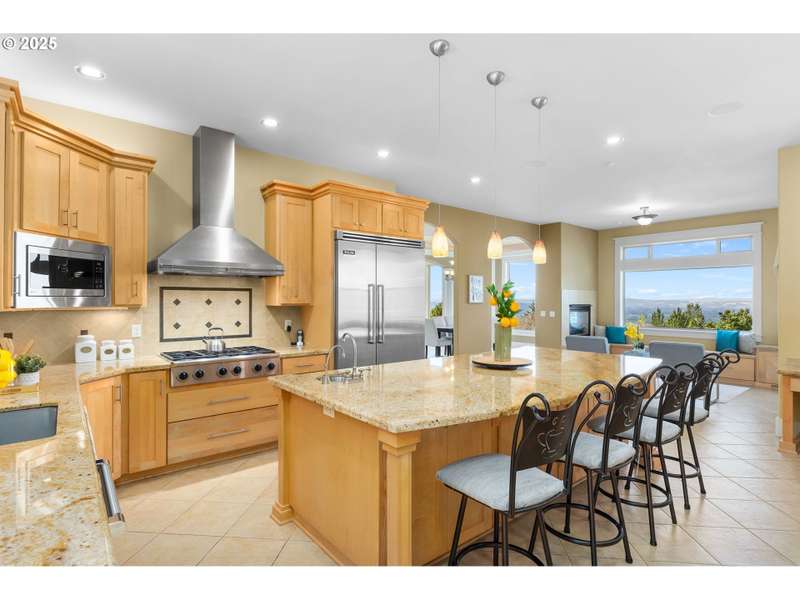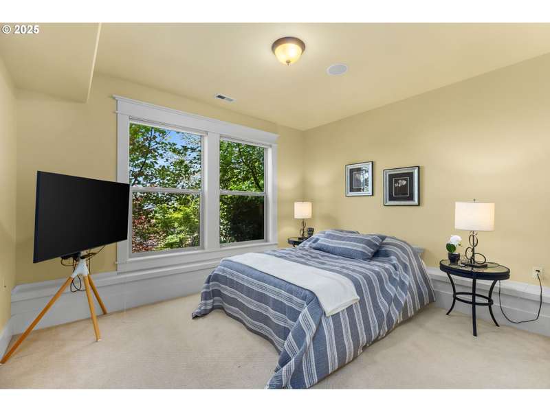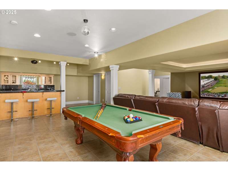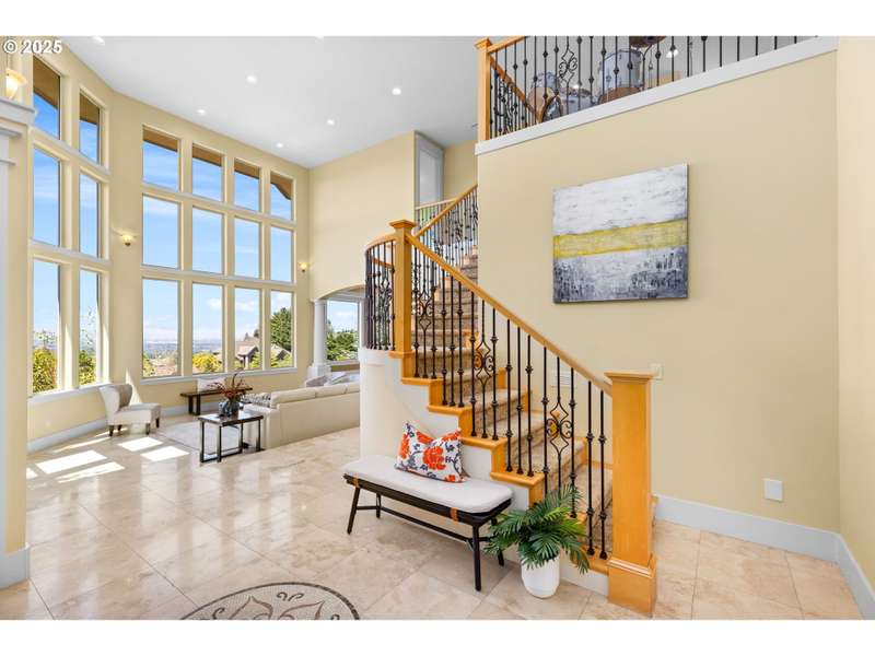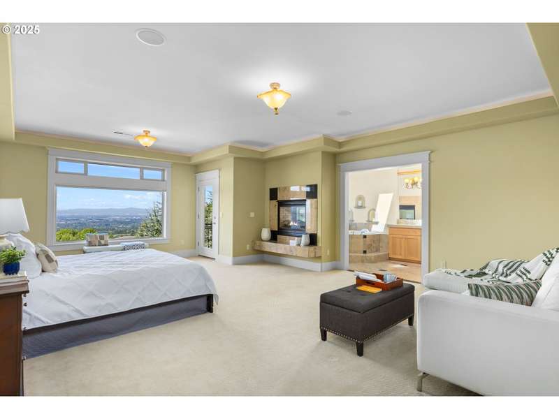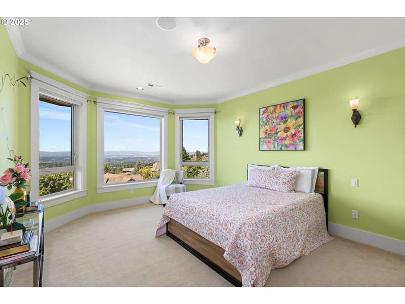 Resort Living Near Work. First time on the market for this stunning custom-built home by Fred Buller in highly sought-after Forest Heights! This luxury residence features a sought after southwest orientation with commanding panoramic views of the Tualatin Valley and Coast Range. Soaring 21' ceilings in the great room greet you upon entry, setting the tone for this one-of-a-kind home. Ideal for entertaining, the open-concept design includes a formal dining room with a pass-through fireplace, a Chef’s kitchen with high-end appliances, oversized island, custom cabinetry with unique glass shelving allowing for light to pass through to each level, walk-in pantry, and a cozy sitting area. Plus a main floor guest bed and bath suiting accommodating all ages of visitors. Step outside to a private garden retreat featuring a 15' waterfall with three distinct water patterns, koi pond, lotus plants, lighting, and serene landscaping—designed for year-round relaxation. Upstairs, the luxurious primary suite includes dramatic views, fireplace, spa-style bath with walk-in double shower, soaking tub, and a custom dressing room with built-ins. Additional upstairs features include guest bedrooms, full baths, and a dedicated home office. Lower level includes a full home theater, game room with pool table, full entertaining bar, and guest suite with private exterior entry—perfect for extended stays, storage and wine cellar. Enjoy the mature landscaping including a custom grape trellis. 3-car garage, high-end finishes throughout, and an unbeatable location close to work and recreation. Ideally situated with a green space lot across the street will provide a protected view in the future. Truly resort living in the city. [Home Energy Score = 1. HES Report at https://rpt.greenbuildingregistry.com/hes/OR10240059]