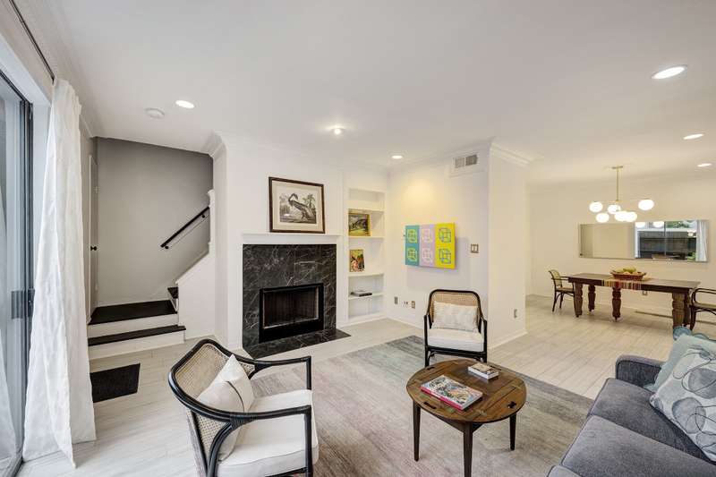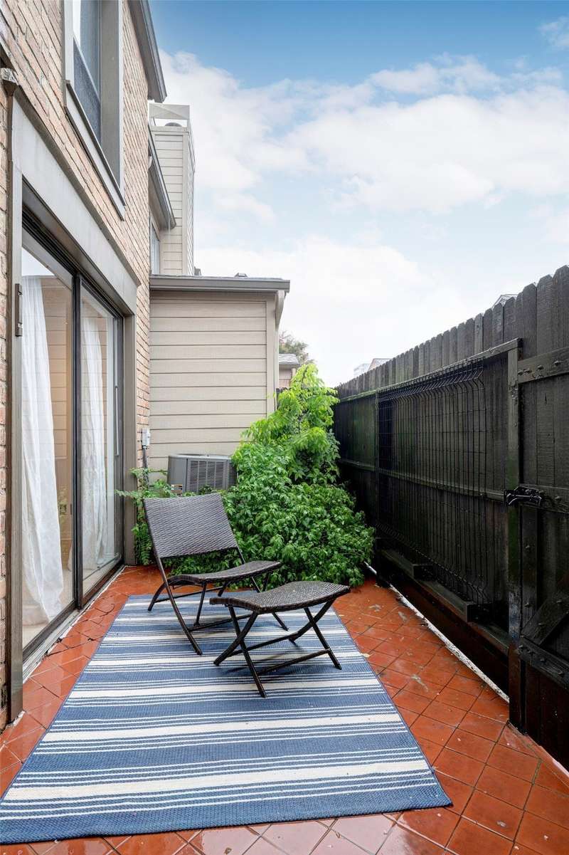 Move-in ready and stylish 2 bed, 2.5 bath townhome with no carpet in a convenient location near shopping, dining, and Buffalo Bayou Park. Located in a guard station-gated and well-maintained community with a pool, this updated home offers a private outdoor patio, 2-car garage, and an open-concept layout great for entertaining. On the 1st floor, the lovely dining area is open to the efficient kitchen with stainless steel appliances, and connects to the spacious living room with a fireplace and built-in shelves. 2 bedrooms, each with an ensuite bathroom and walk-in closet, are located on the 2nd floor, along with the laundry room. Enjoy a lock-and-leave lifestyle, fresh interior paint, modern finishes, generous closet space, excellent storage throughout, and quick access to Downtown, Med Center, and the Galleria. All per Seller.