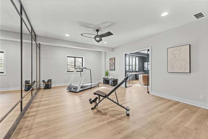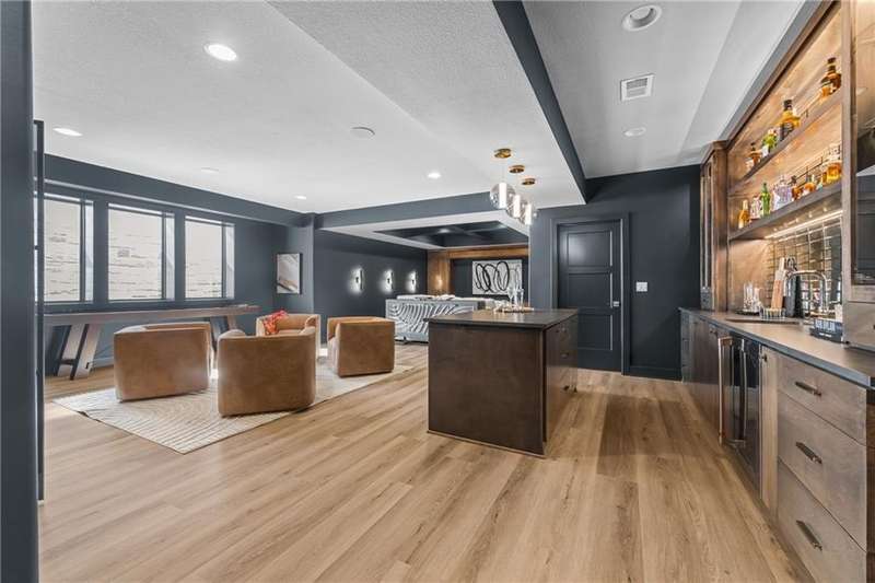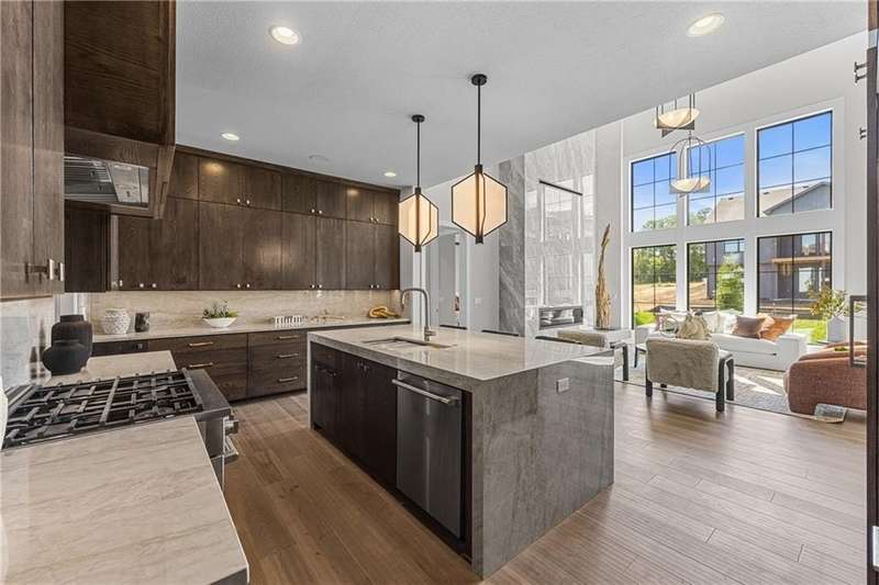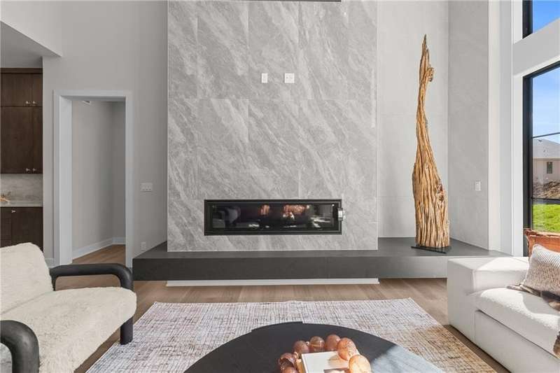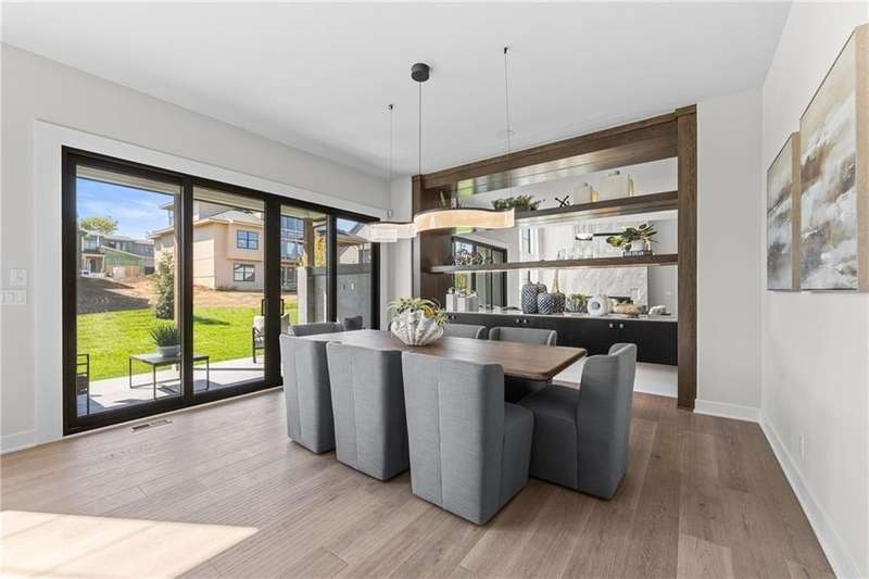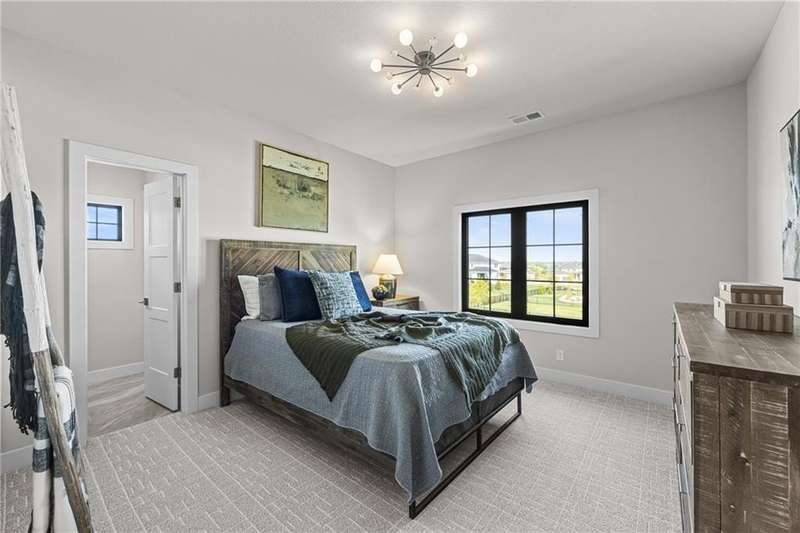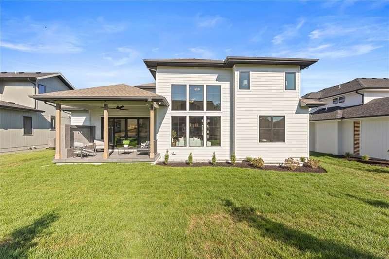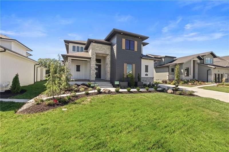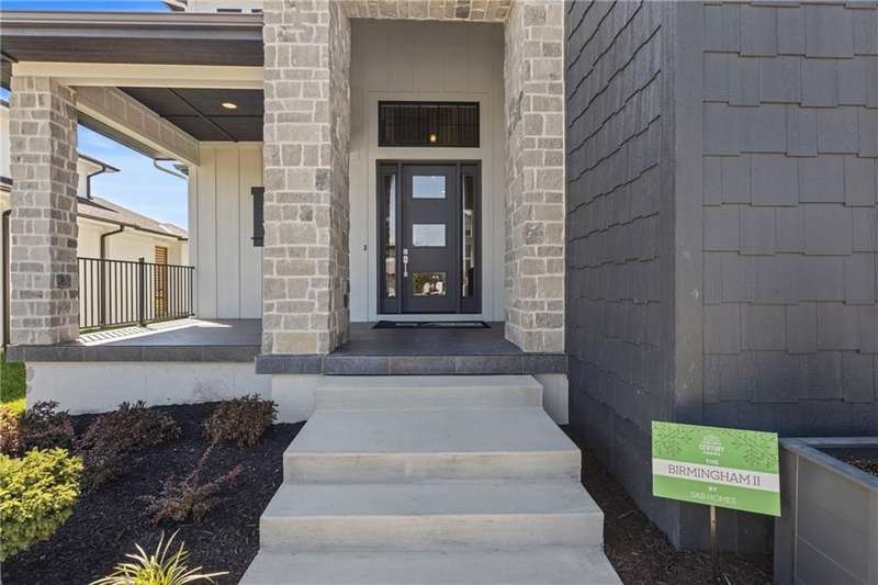 This new 1.5 Story Birmingham II plan by SAB HOMES is READY to tour!! This spectacular new MODEL HOME is an impressive mix of modern sophistication loaded with premium new upgrades. This home offers 3 levels of finished space at just over 4600 square feet. As you enter, this plan features a soaring two story ceiling, fantastic new modern lighting, two story great room with floor to ceiling tile fireplace with floating hearth and black linear fireplace. The spacious dining room showcases a sophisticated accent wall with mirrors and floating shelves and a double slider door to access the covered 17' x 10' tiled patio. The butlers pantry has an extra MOEN sink, water bottle filler and glass swing door to Chef's kitchen with premium CAFE appliances and DEKTON waterfall island and backsplash. Explore the main level primary bedroom with tile headboard accent wall with mirrored walnut side trim, spacious bath with freestanding tub and large closet. There are four bedrooms up plus a loft space at the landing ideal for upstairs game room or craft room. There is a space for everyone in this home with three floors and 5 bedrooms. The lower level offers 1339 sf of additional finished space ideal for entertaining or exercising with a whiskey wall bar with mirrored tiles and floating shelves, fitness room with double glass doors and Finnleo Sauna, full bath, and theater room. Don't miss the extra features including a guest bath backlit rock wall, extended 3rd car bump out for extra storage, split 3 car garage, real stone trim, large front porch, tiled front porch and patio TV wall. Come join the fun in Century Farms, a unique one of a kind upscale new home community in Overland Park. Century Farms has a spectacular clubhouse with a fitness center, resort style swimming pool, two pickle-ball courts, kids play area and community garden. It's located near the new Bluhawk shopping center, Heritage Park and the OP Arboretum. BLUE VALLEY SCHOOLS