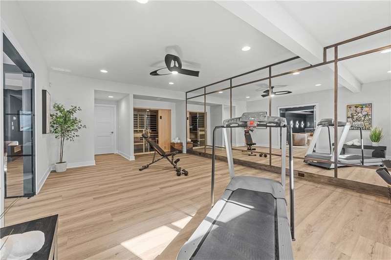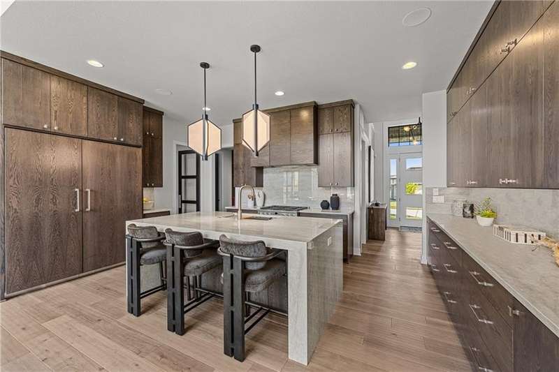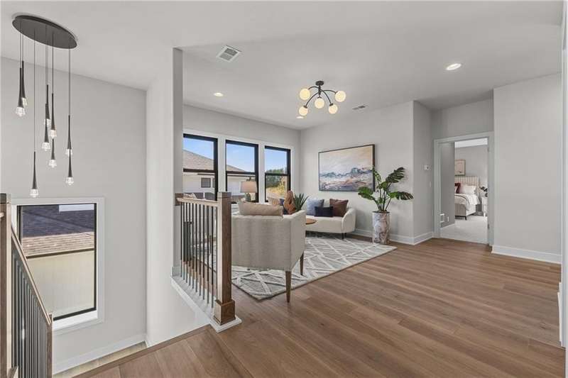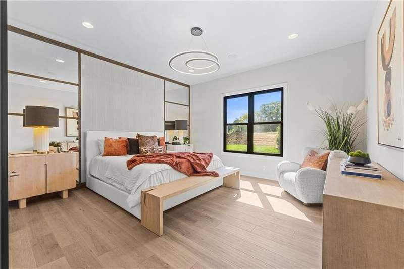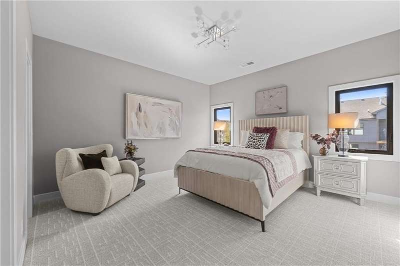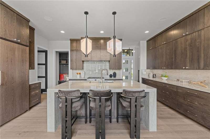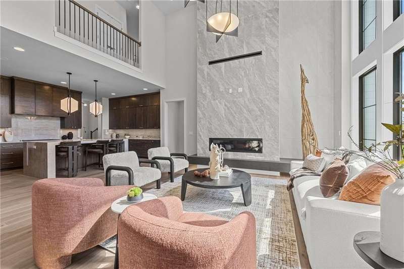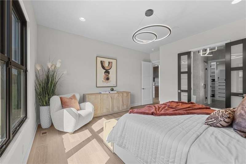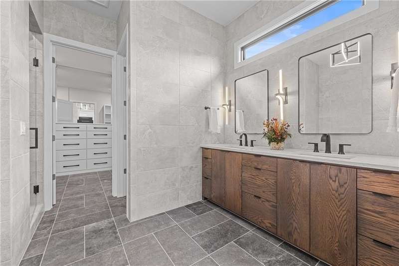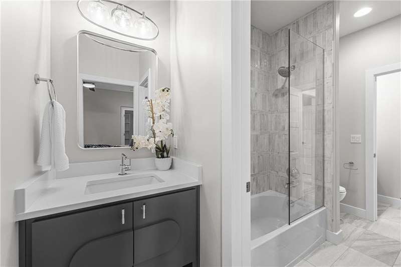 This new 1.5 Story Birmingham II plan by SAB HOMES is READY to tour!! This spectacular new MODEL HOME is an impressive mix of modern sophistication loaded with premium new upgrades. This home offers 3 levels of finished space at just over 4600 square feet. As you enter, this plan features a soaring two story ceiling, fantastic new modern lighting, two story great room with floor to ceiling tile fireplace with floating hearth and black linear fireplace. The spacious dining room showcases a sophisticated accent wall with mirrors and floating shelves and a double slider door to access the covered 17' x 10' tiled patio. The butlers pantry has an extra MOEN sink, water bottle filler and glass swing door to Chef's kitchen with premium CAFE appliances and DEKTON waterfall island and backsplash. Explore the main level primary bedroom with tile headboard accent wall with mirrored walnut side trim, spacious bath with freestanding tub and large closet. There are four bedrooms up plus a loft space at the landing ideal for upstairs game room or craft room. There is a space for everyone in this home with three floors and 5 bedrooms. The lower level offers 1339 sf of additional finished space ideal for entertaining or exercising with a whiskey wall bar with mirrored tiles and floating shelves, fitness room with double glass doors and Finnleo Sauna, full bath, and theater room. Don't miss the extra features including a guest bath backlit rock wall, extended 3rd car bump out for extra storage, split 3 car garage, real stone trim, large front porch, tiled front porch and patio TV wall. Come join the fun in Century Farms, a unique one of a kind upscale new home community in Overland Park. Century Farms has a spectacular clubhouse with a fitness center, resort style swimming pool, two pickle-ball courts, kids play area and community garden. It's located near the new Bluhawk shopping center, Heritage Park and the OP Arboretum. BLUE VALLEY SCHOOLS