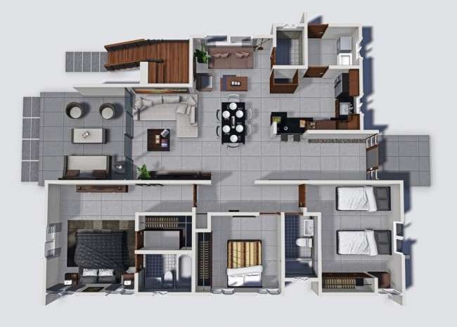Available are different models of villas in different colors and with either 1 and 2 levels.