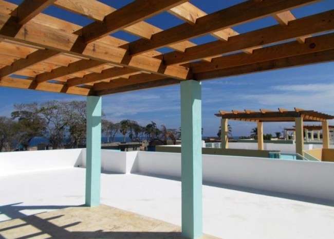 Villa Caracol with 151.48 square meters features a three-bedroom with a master bedroom, a bathroom and dressing room, and 1 common bathroom for the two other bedrooms. There is a 1/2 bath for visits close by the entrance. The villa has its own swimming pool with 1/2 outdoor bathroom which is situated in a tropical lush garden. Exterior stairs with stuccoed Coral stone prints and aluminum glass handrails are leading to the roof terrace with amazing ocean views.