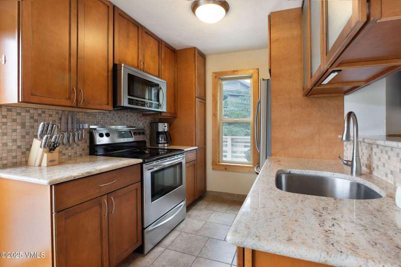 This light-filled end unit is tucked into the peaceful Wren House complex and offers stunning mountain views from a generous wraparound deck, perfect for relaxing or entertaining a crowd. Due to its location, the deck enjoys rare privacy with no neighboring decks in sight. Inside, the property is meticulously maintained and comes fully furnished, so it is move in ready. Notable features include heated floors in the kitchen and upstairs bathroom, a pantry cabinet with pullouts, a custom closet, water filtration system for the entire condo, and multiple parking spaces. The unit sits in a very quiet location, well away from the noise of I-70, adding to the serene mountain-living experience. Conveniently located near the Town of Vail bus stop and complete with a large storage unit below. An added bonus is, short-term rentals are allowed, making this a fantastic investment opportunity or ideal mountain getaway! Loft serves as the second bedroom with a queen sleeper sofa.