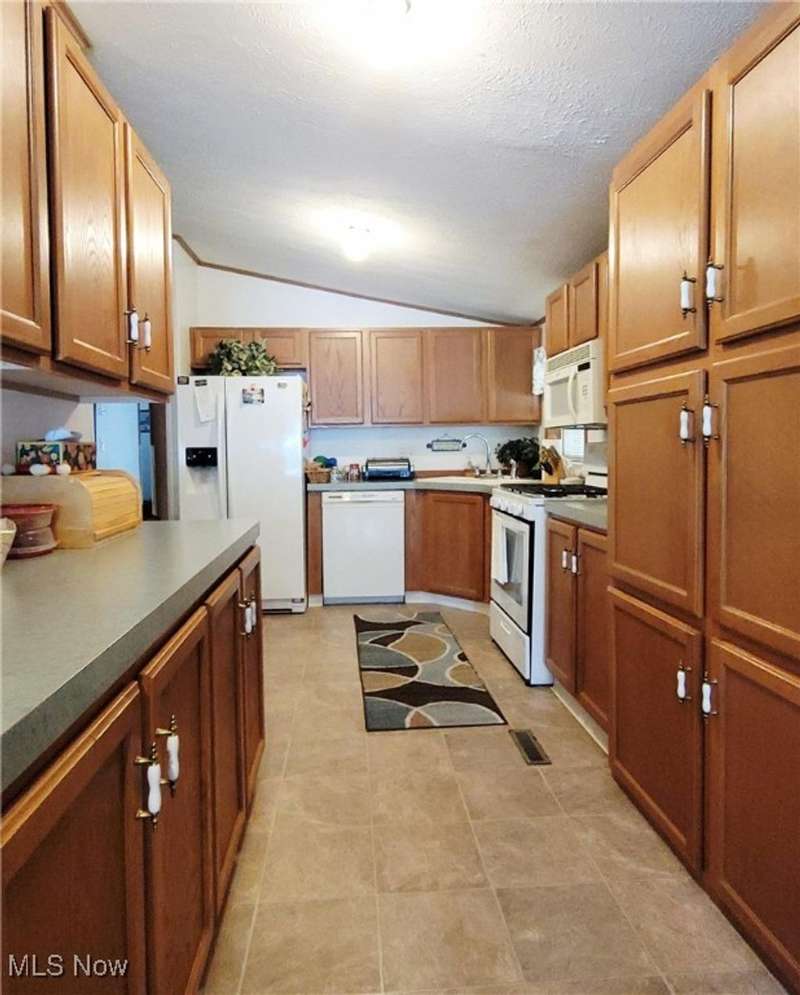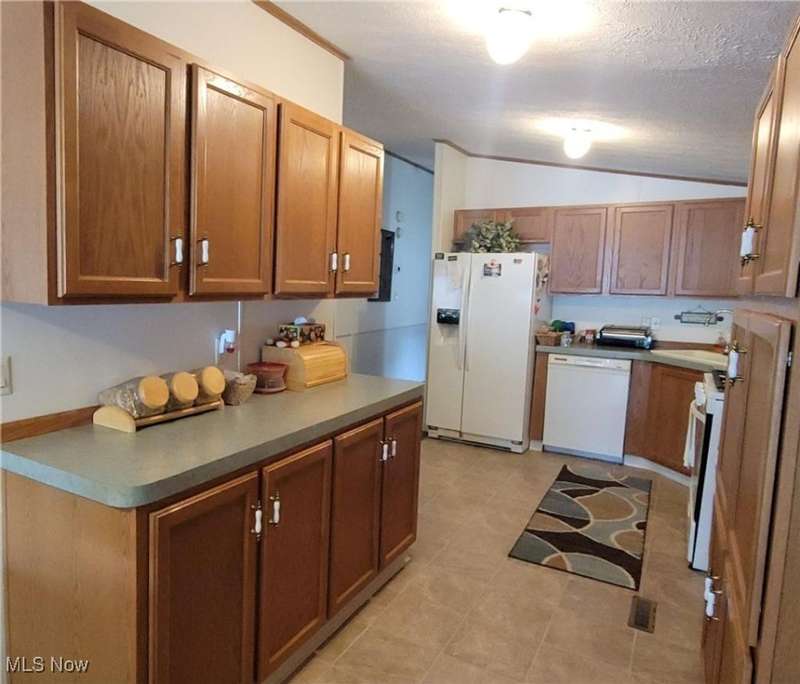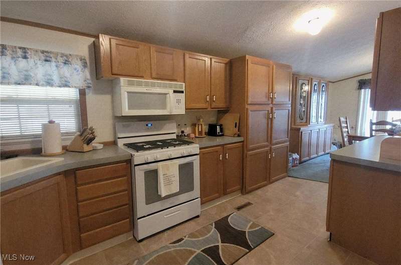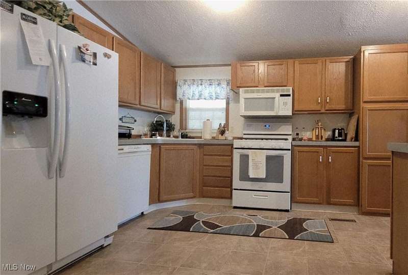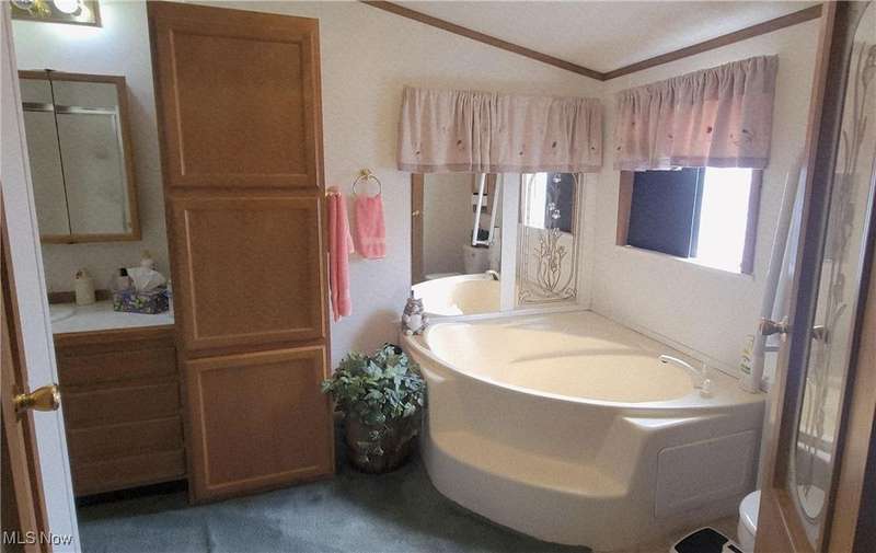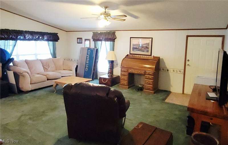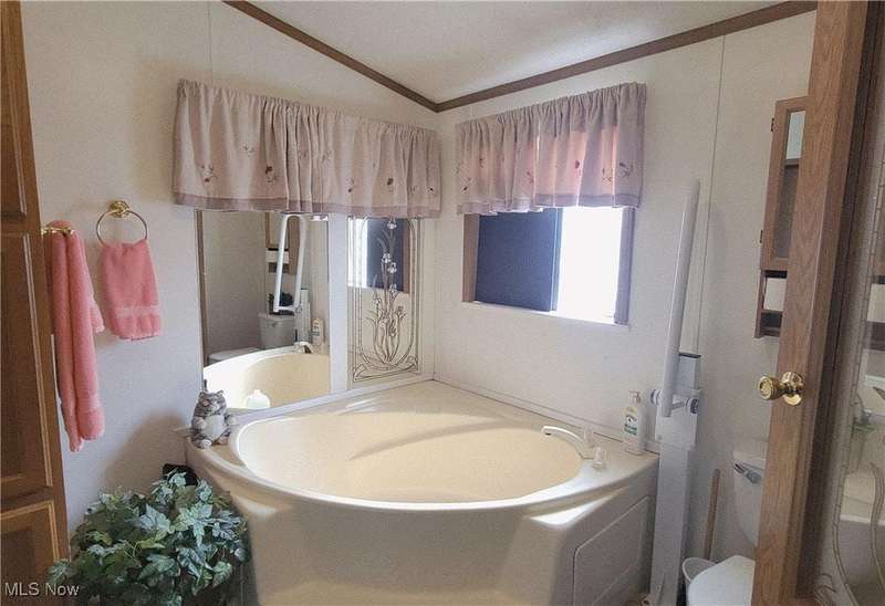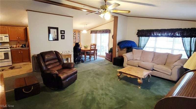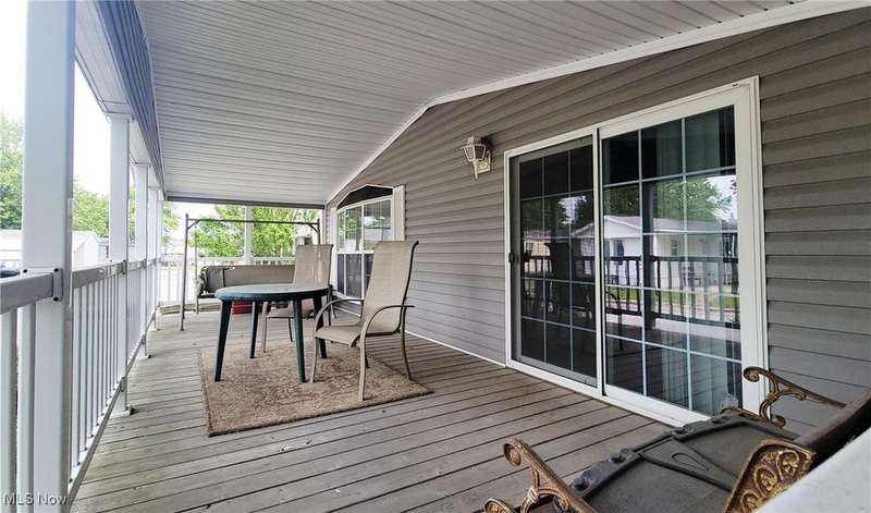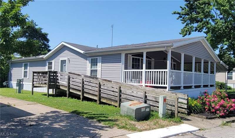 Great opportunity to have your year round place by the Lake in The Fountains 55+ Mobile Home Park! Double wide 3 bed/2bath mobile home with a fantastic covered front porch to enjoy sunny days or relaxing evenings. Spacious living/dining/kitchen areas for entertaining. Kitchen has many cupboards & countertops, not to mention all appliances will stay! Sliding doors lead from dining room out to 20 x 10 covered porch. Primary bedroom with attached bath, soaking tub & walk in closet. Wonderful large carport, and wooden patio on side of home (fenced side yard not included, but can be rented from park). 2003 26 x 56 Mansion. All measurements are approximate, taxes are for current owner. No home rentals allowed in park, pet restrictions. Seller offering a small carpet allowance at closing.