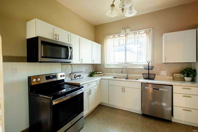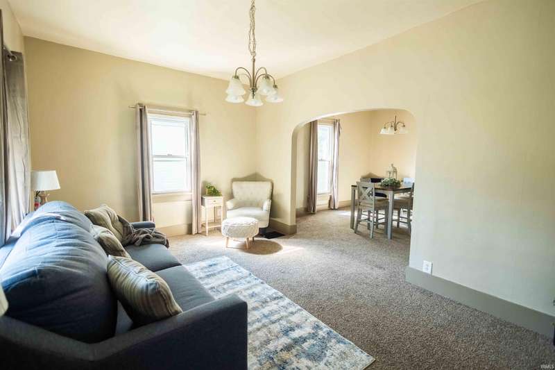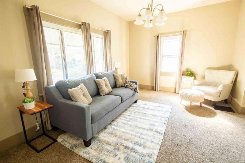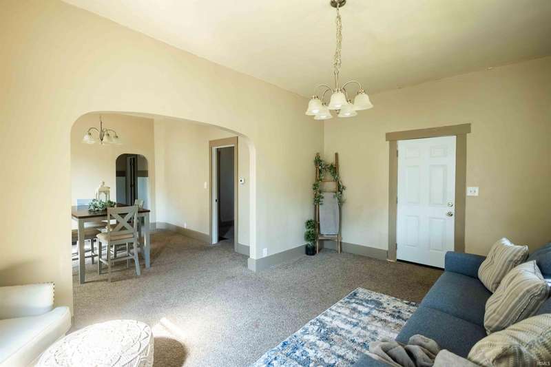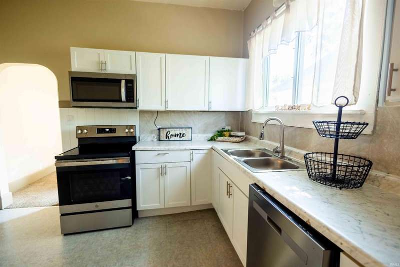 WELCOME HOME to your TWO bedroom, ONE bathroom adorably renovated ranch! Stroll up the sidewalk to find a covered front porch perfect for relaxing and sipping coffee on those crisp Fall mornings. Step inside to be greeted by your living room, which offers lots of natural lighting. Continue on to find your dining area which flows straight into your kitchen. Right off your kitchen, you will find your two bedrooms with a jack and jill bathroom. Through the kitchen to your mudroom and laundry room area you have a back door that leads to your spacious backyard. Backyard offers plenty of room for the kiddos and critters to play as well as a driveway offering plenty of off street parking. Some of the recent updates include: Metal roof, all plumbing in the home and underground from street to alley, complete electrical and wiring, insulation in walls, blown insulation in attic, windows, carpet, kitchen, and bathroom remodeled. Home comes complete with kitchen appliances and an HSA Home Warranty with Buyer Seven Star Upgrade. Utilities available are: Duke Energy, Centerpoint Gas, and Bedford City Utilities. Come check out this adorable and affordable home today!